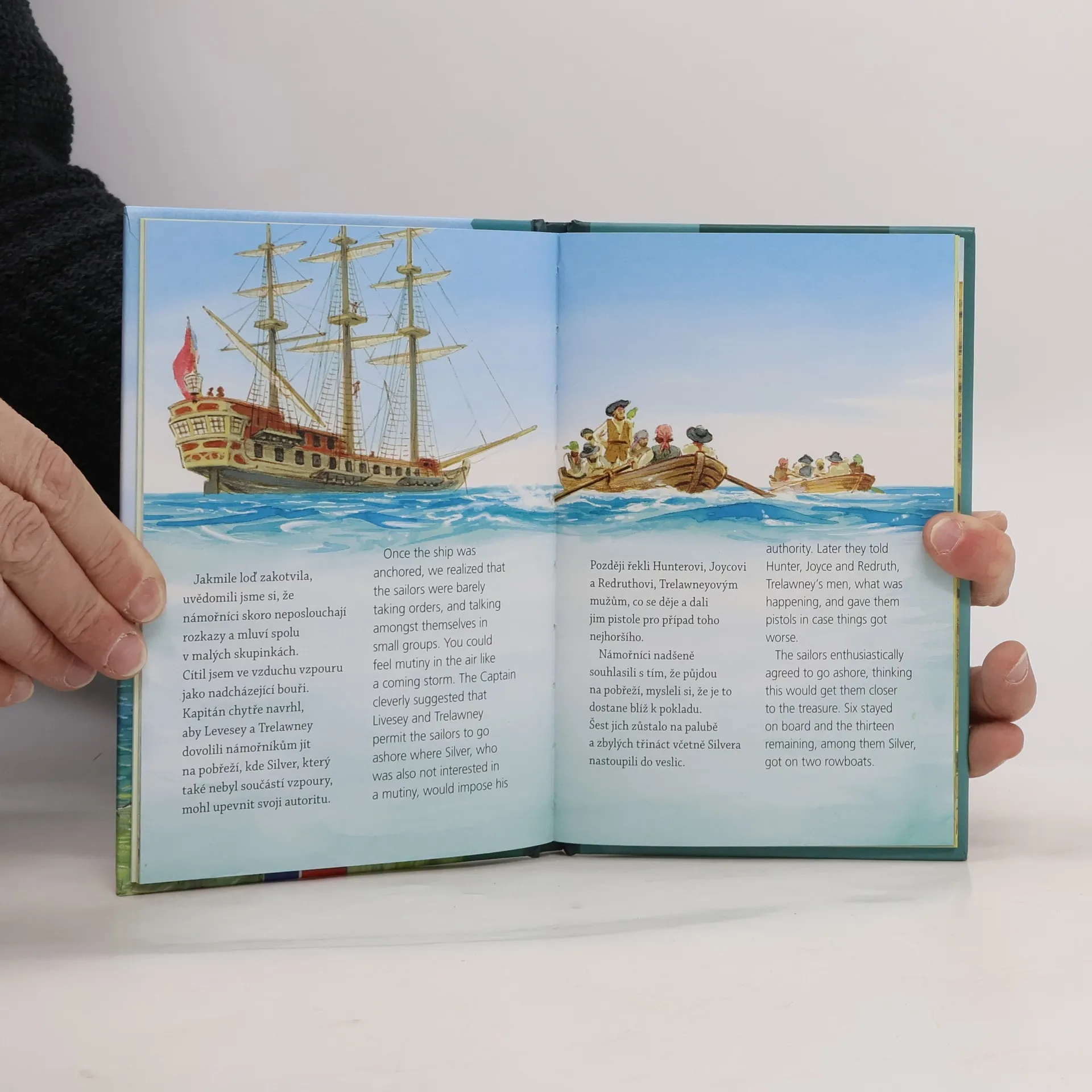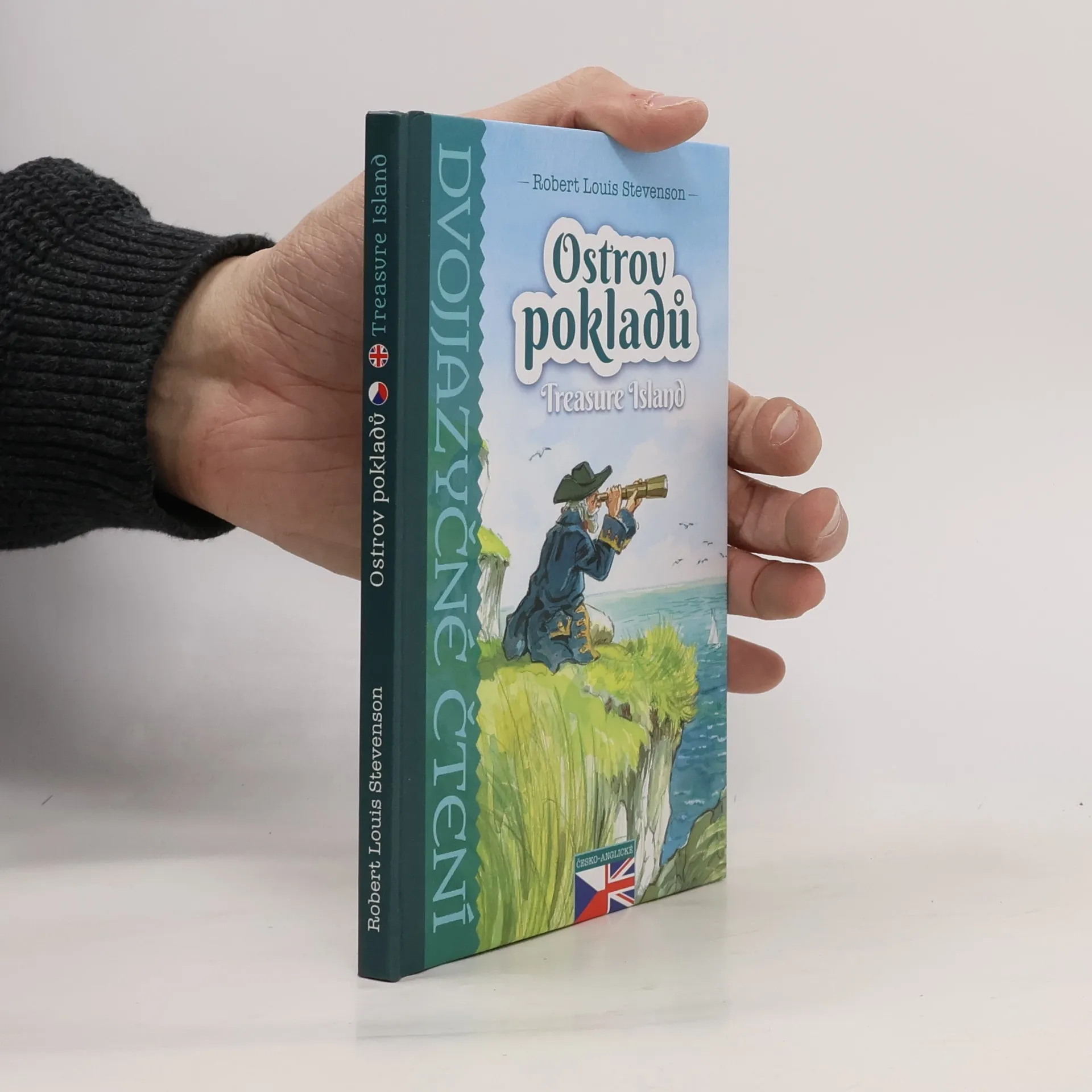 Zkrácený a převyprávěný příběh o dobrodružné honbě za pokladem kapitána Flinta v bohatě ilustrované knížce pro děti mírně až středně pokročilé v angličtině.