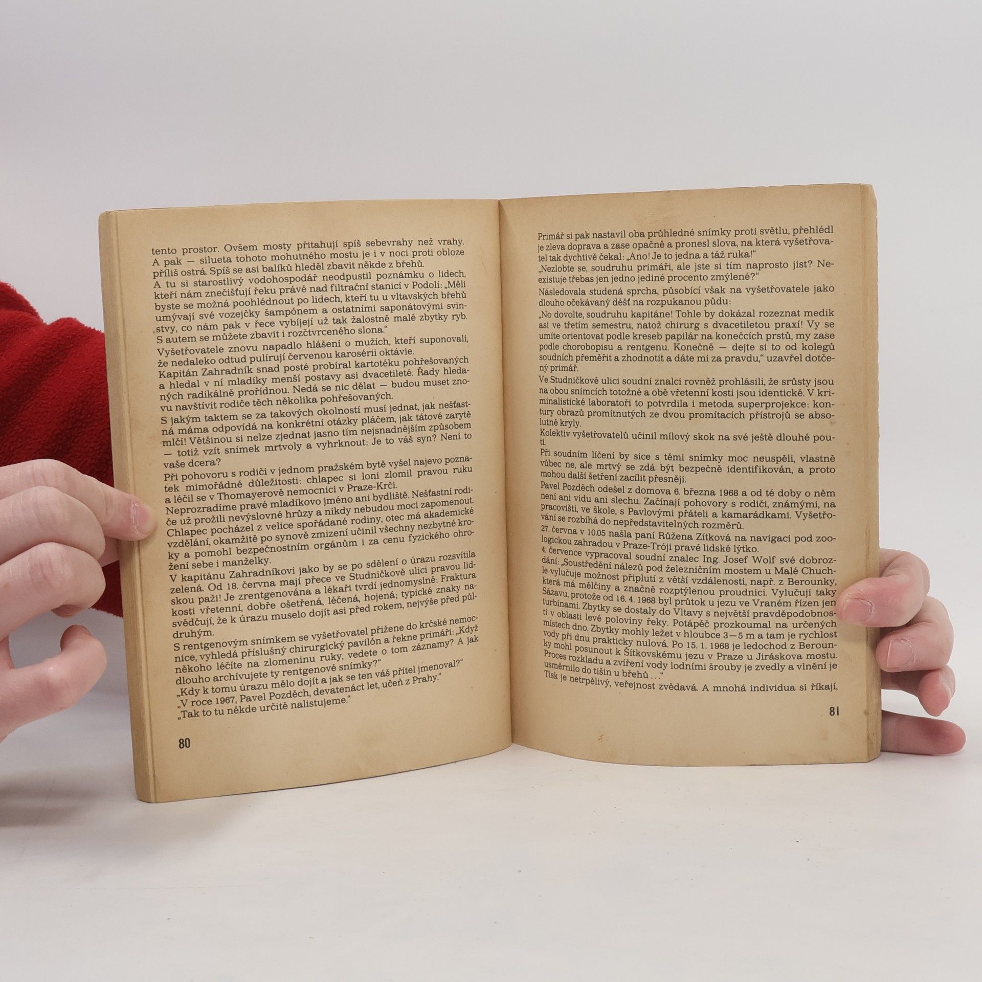 Z archivu federální kriminální ústředny. Skládá se z více případů, za každým z nich je komentář zainteresované osoby. Obsahuje doprovodné fotografie. Obsahuje 4 případy: Kriminalistův první velký případ. (Hovoří náčelník poříčního oddílu VB Praha kapitán Václav Janeček)Sto padesát koní pod Vyšehradem. (Vypráví inž. Josef Wolf, náměstek ředitele povodí Vltavy v Praze) Pasáček. (Vyšetřovatel, prokurátoři a předseda obvodního soudu na besedě o protispolečenském jednání) Šárka leží ve Vltavě. (Interview s podplukovníkem Josefem Janůrkem, náčelníkem federální kriminální ústředny FSVB) Rozšířeno je také 3 krátkými povídkami: Rekord : Karel Čapek Na vorech: Egon Ervín Kisch Příběhy s vodárenskou věží: Eduard Bass