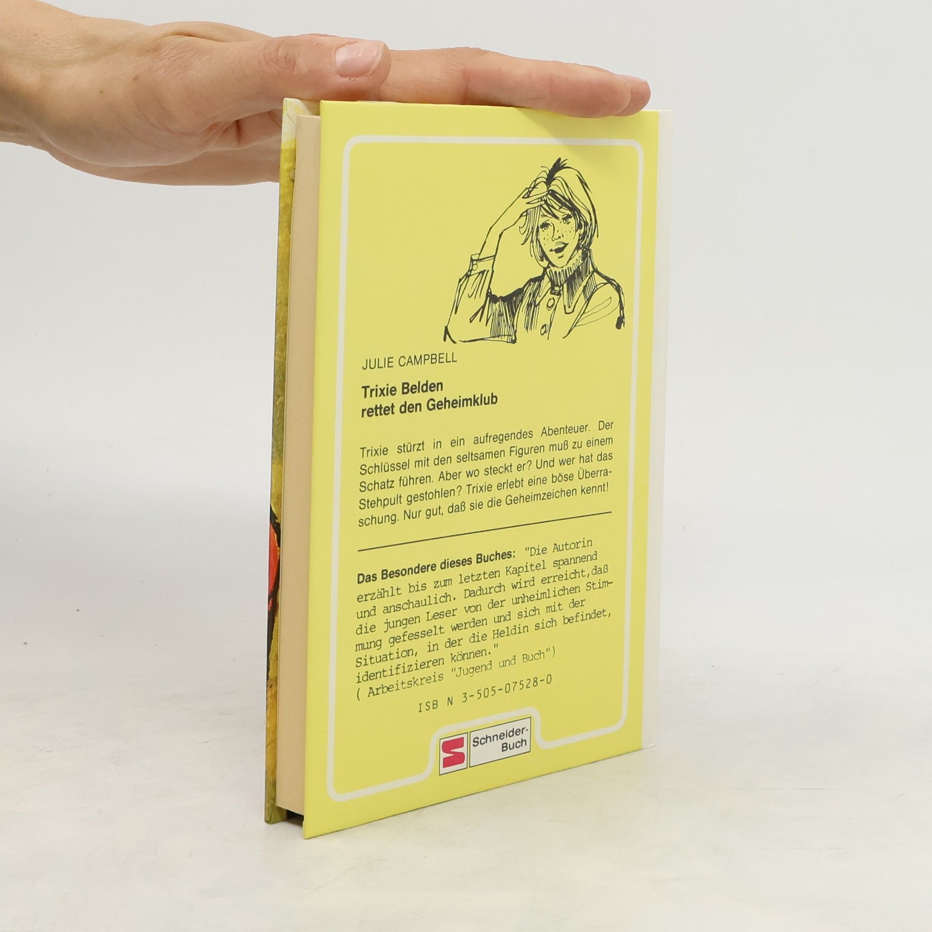 7th book in the trixie Belden series (German) translated into German by Ursula Dotzler From the back of the book: "Trixie stürzt in ein aufregendes Abenteuer. Der Schlüssel mit den seltsamen Figuren muss zu einem Schatz führen. Aber wo steckt er? Und wer hat das Stehpult gestohlen? Trixie erlebt eine böse Überraschung. Nur gut, daß sie die Geheimzeichen kennt!" Details about the book, taken from the last page: Titel der Originalausgabe: Trixie Belden and the Mysterious Code (c) 1961 Western Publishing Company, Inc., Racine, Wisconsin Alle Rechte vorbehalten Titelbild: Kajo Bierl Illustration: Werner Heymann Redaktion: Monika Raeithel-Thaler