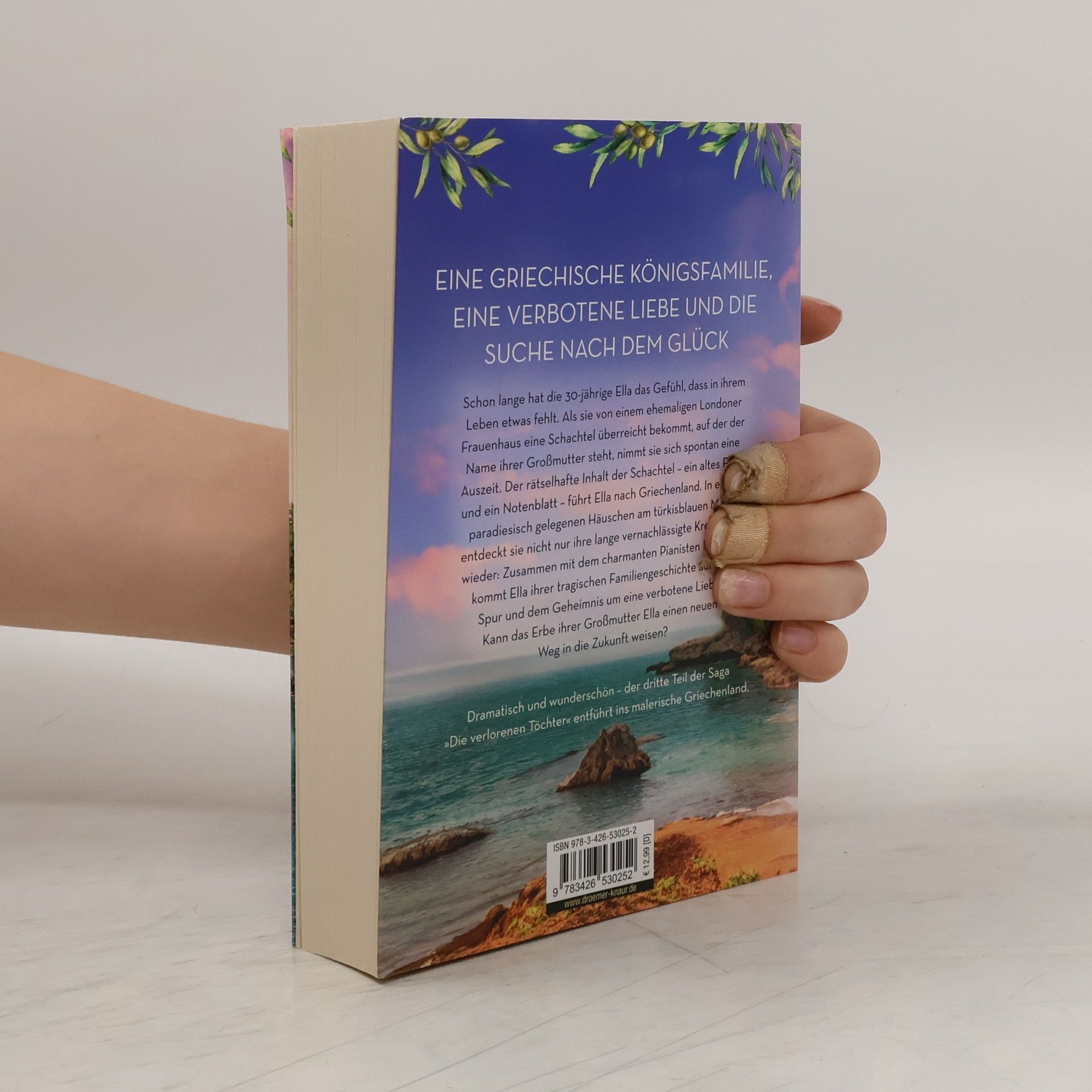 Ein tragisches Familiengeheimnis, eine malerische griechische Insel – und die große Liebe. Soraya Lane verführt auch mit ihrem dritten Familiengeheimnis-Roman zum Träumen , wenn sich die 30-jährige Ella aus London auf Spurensuche nach Griechenland begibt. Schon lange hat Ella das Gefühl, dass in ihrem Leben etwas fehlt. Es erscheint ihr wie ein Zeichen, als sie von einem ehemaligen Londoner Frauenhaus eine mysteriöse Schachtel überreicht bekommt, auf der der Name ihrer verstorbenen Großmutter steht. Die Schachtel enthält lediglich ein verblichenes Foto aus Griechenland und ein altes Notenblatt. Ella nimmt sich spontan eine Auszeit, um dem Rätsel auf den Grund zu gehen. Bei ihren Recherchen zu dem Notenblatt lernt sie den charmanten Violinisten Gabriel kennen, der das Lied darauf erkennt. Das Foto wiederum führt Ella auf eine kleine griechische Insel. In einem malerisch gelegenen Häuschen am türkisblauen Meer entdeckt sie nicht nur ihre lange vernachlässigte Kreativität wieder: Zusammen mit Gabriel kommt Ella ihrer tragischen Familiengeschichte auf die Spur und dem Geheimnis um eine verbotene Liebe. Kann das Erbe ihrer Großmutter Ella auch einen neuen Weg in die Zukunft weisen? »Die verheimlichte Tochter« ist der dritte Familiengeheimnis-Roman der ergreifenden Bestseller-Saga »Die verlorenen Töchter« von Soraya Lane. Jede der geheimnisvoll-atmosphärischen Liebesgeschichten entführt an einen Sehnsuchtsort und erzählt, wie eine von sieben jungen Frauen das Erbe ihrer Großmutter ergründet – perfekte Unterhaltung für Leser*innen von Lucinda Riley oder Katherine Webb. Die einzelnen Romane der Familiengsaga-Reihe können unabhängig voneinander gelesen werden und sind in folgender Reihenfolge erschienen: Die verlorene Tochter Die vermisste Tochter Die verheimlichte Tochter
