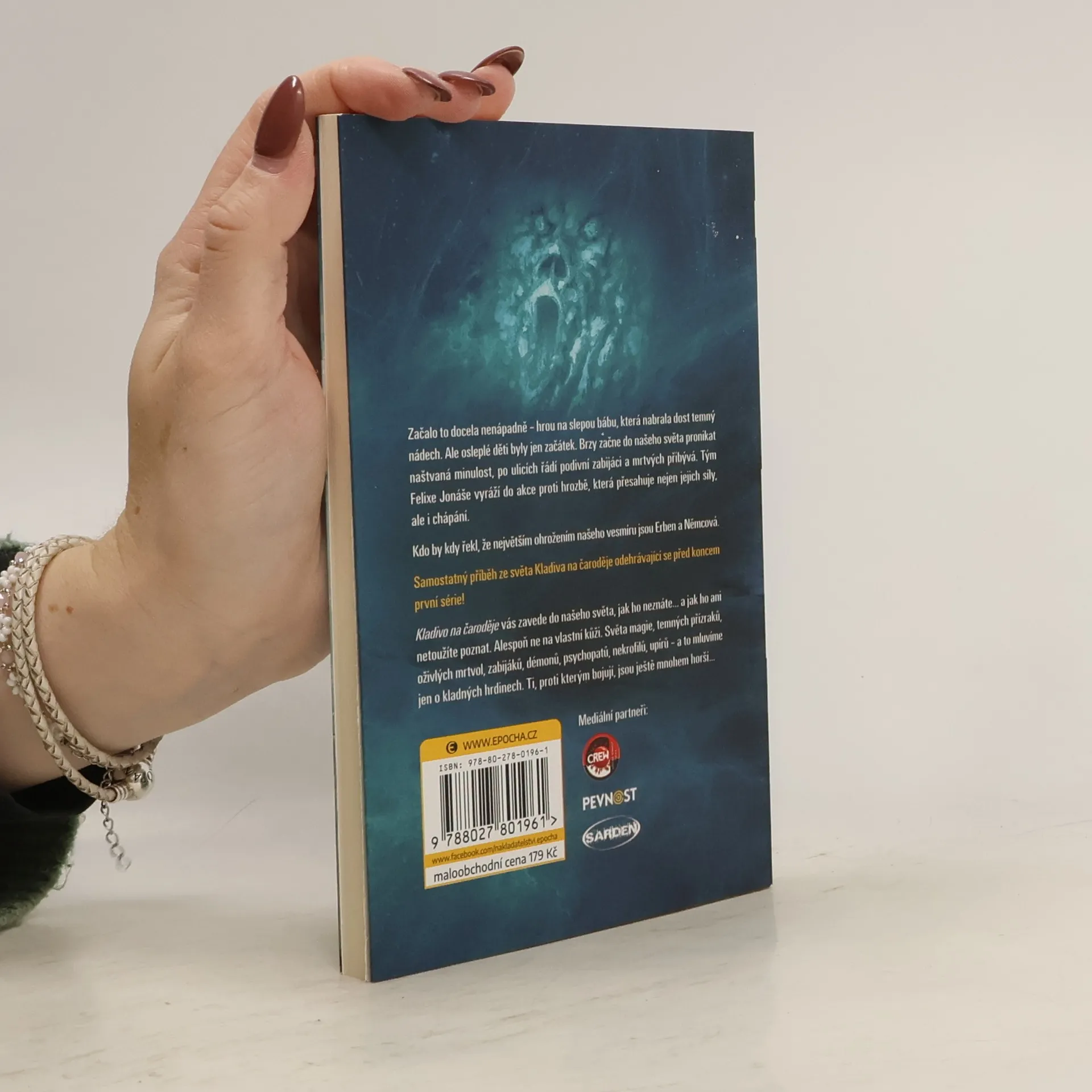 Začalo to docela nenápadně – hrou na slepou bábu, která nabrala dost temný nádech. Ale osleplé děti byly jen začátek. Brzy začne do našeho světa pronikat naštvaná minulost, po ulicích řádí podivní zabijáci a mrtvých přibývá. Tým Felixe Jonáše vyráží do akce proti hrozbě, která přesahuje nejen jejich síly, ale i chápaní. Kdo by kdy řekl, že největším ohrožením našeho vesmíru jsou Erben a Němcová. Samostatný příběh ze světa Kladiva na čaroděje! Kladivo na čaroděje vás zavede do našeho světa, jak ho neznáte… a jak ho ani netoužíte poznat. Alespoň ne na vlastní kůži. Světa magie, temných přízraků, oživlých mrtvol, zabijáků, démonů, psychopatů, nekrofilů, upírů – a to mluvíme jen o kladných hrdinech. Ti, proti kterým bojují, jsou ještě mnohem horší…