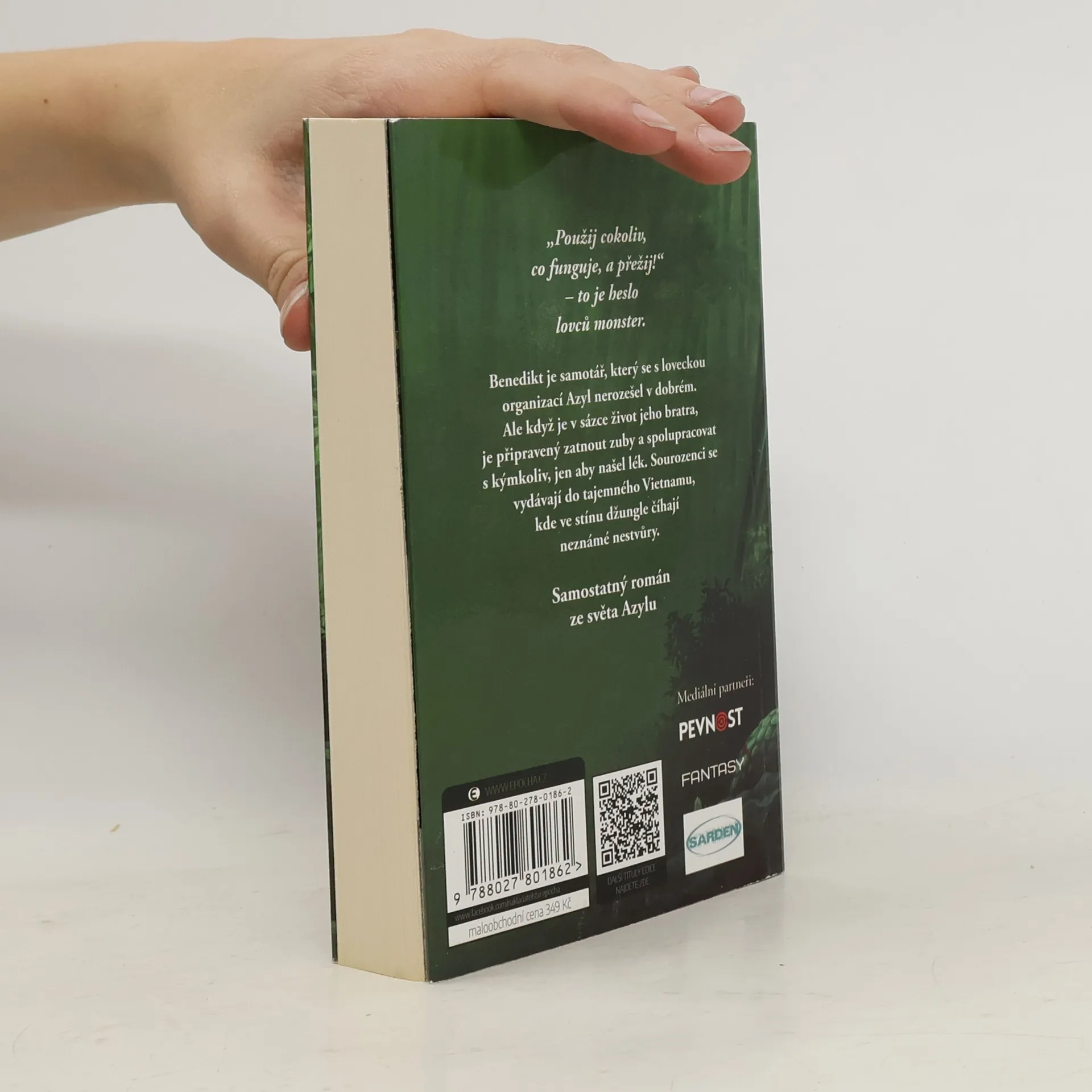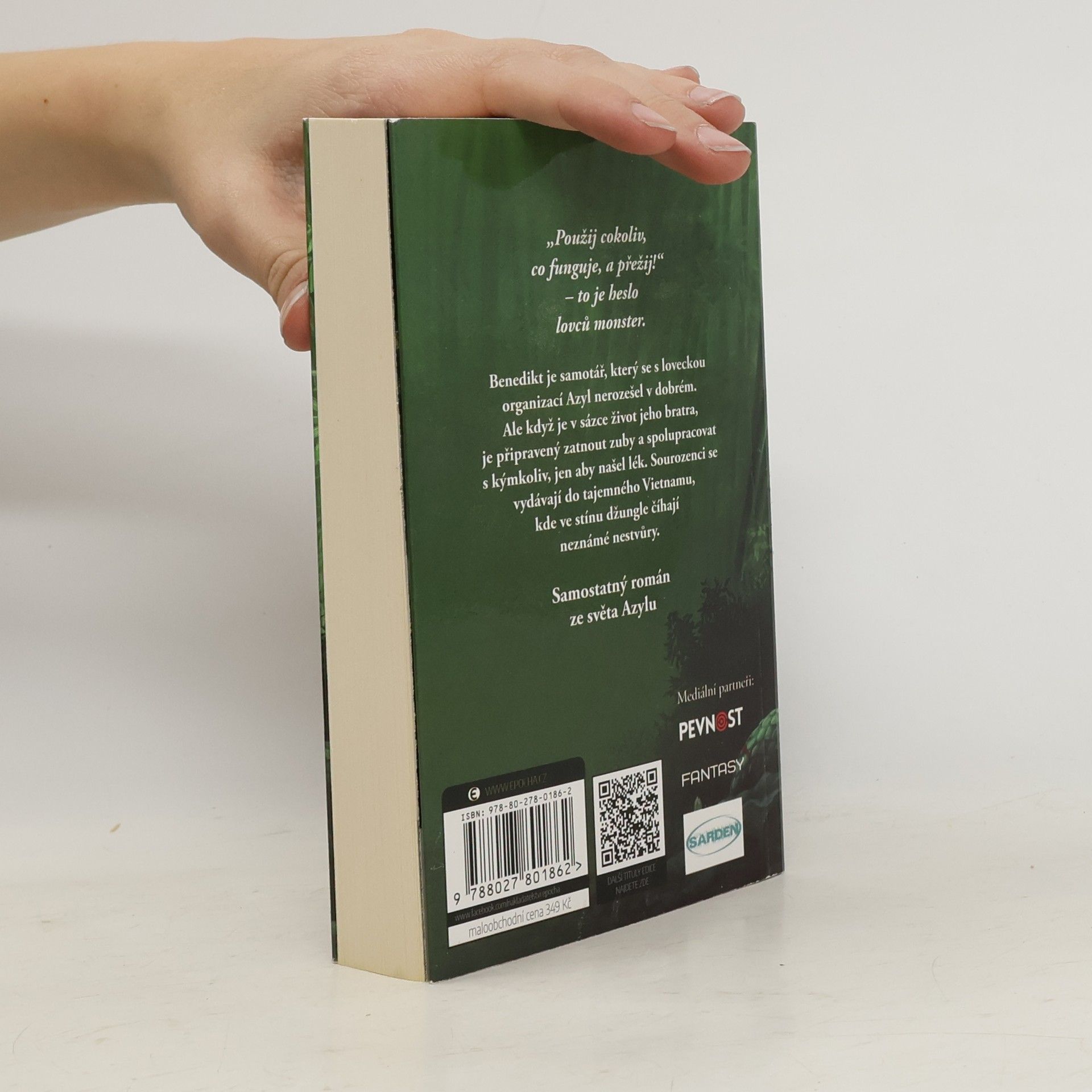 Fantasy román české autorky je tentokrát samostatným příběhem ze světa Azylu. Benedikt je samotář, který se s loveckou organizací Azyl nerozešel v dobrém. Ale když je v sázce život jeho bratra, je připravený zatnout zuby a spolupracovat s kýmkoliv, jen aby našel lék. Sourozenci se vydávají do tajemného Vietnamu, kde ve stínu džungle číhají neznámé nestvůry. Nakladatelská anotace. Kráceno.