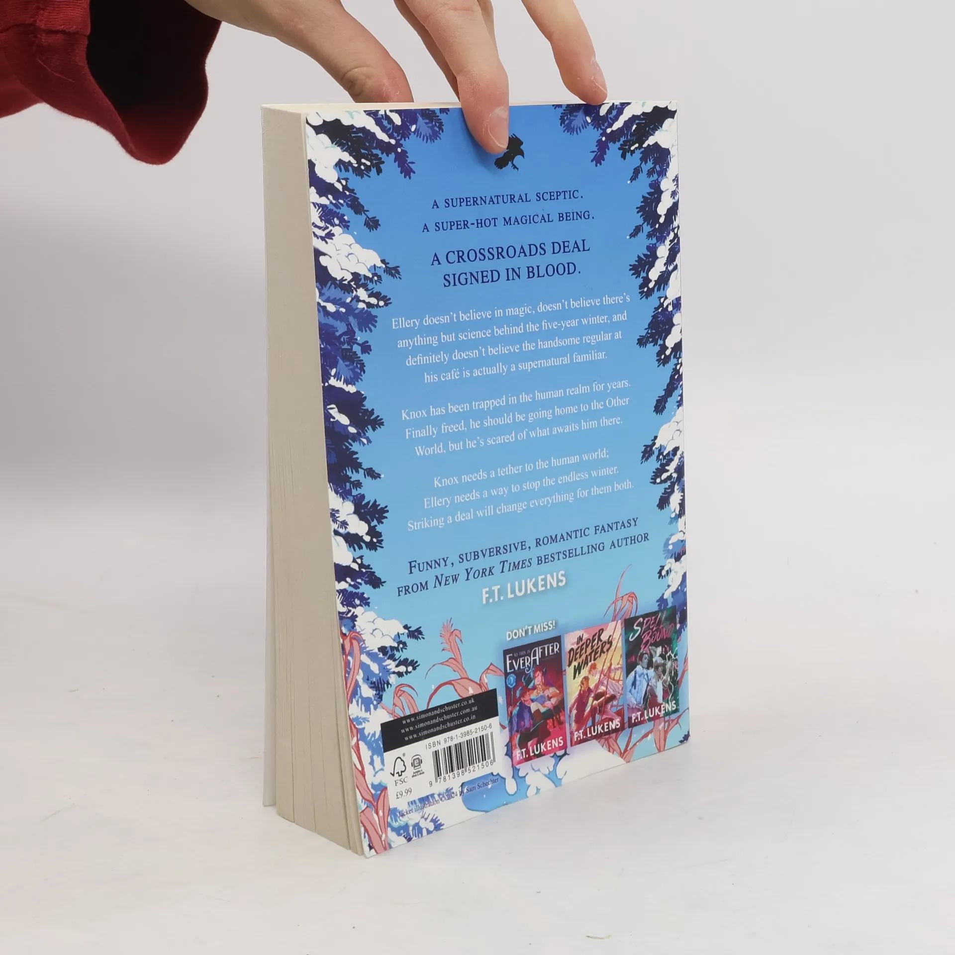 A sceptic and a supernatural creature get more than they bargain for when they make crossroads deal to save themselves. A perfect LGBT+ romantic fantasy for fans of Rainbow Rowell, Margaret Rogerson and Adam Silvera! Ellery doesn't believe in magic. Sure, they've been stuck in a five-year winter, but there's got to be a scientific explanation for that. They're more concerned with working hard to send money back to the family farm than with whether there's a goddess out there who could put a stop to it. Knox has been trapped in the human realm for years. In service to a powerful witch for a decade, Knox is finally freed when her crossroads deal meets its terms. But Knox isn't sure he wants to return to the Other World, especially since his queen seems to have abandoned him. When a chance encounter finds Ellery coming to Knox's rescue, they're suddenly face to face with a (annoyingly attractive) guy who claims to be a supernatural familiar - something they definitely don't believe. But Ellery needs a way to stop the endless winter and save their family farm, and Knox needs a human who can tether him to their realm. A crossroads deal can't go wrong, can it? Funny, subversive, romantic fantasy from New York Times bestselling author F. T. Lukens. Look out for So This is Ever After, In Deeper Waters and Spell Bound.