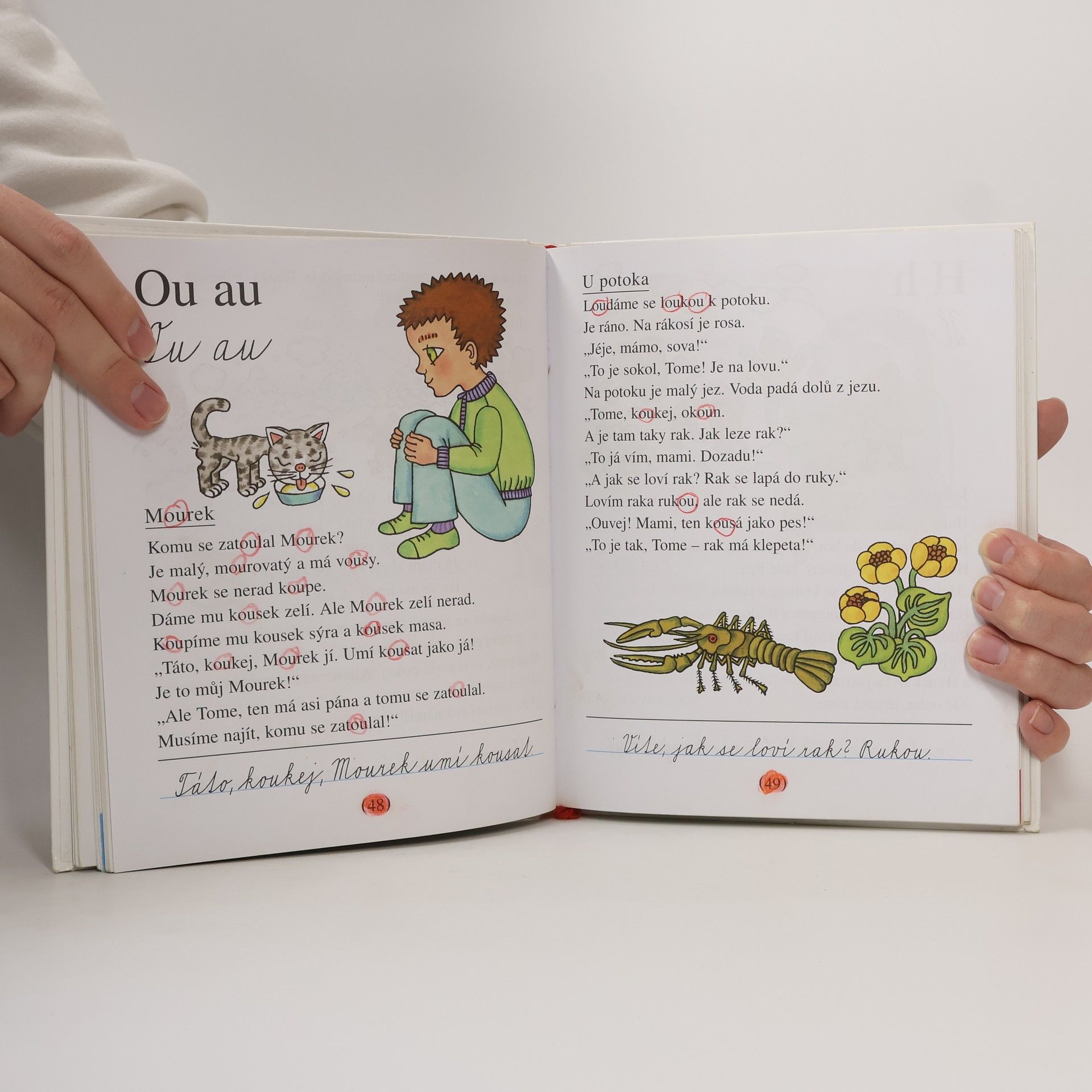 Oblíbený slabikář s vlídnými texty J. Žáčka obsahuje slabiky a slova pro nácvik uvědomělého čtení, dětské básně, říkadla a krátké příběhy s častou frekvencí přímé řeči. Slabikář byl oceněn Zlatou stuhou 1993 a téhož roku získal i Cenu Comeniana.