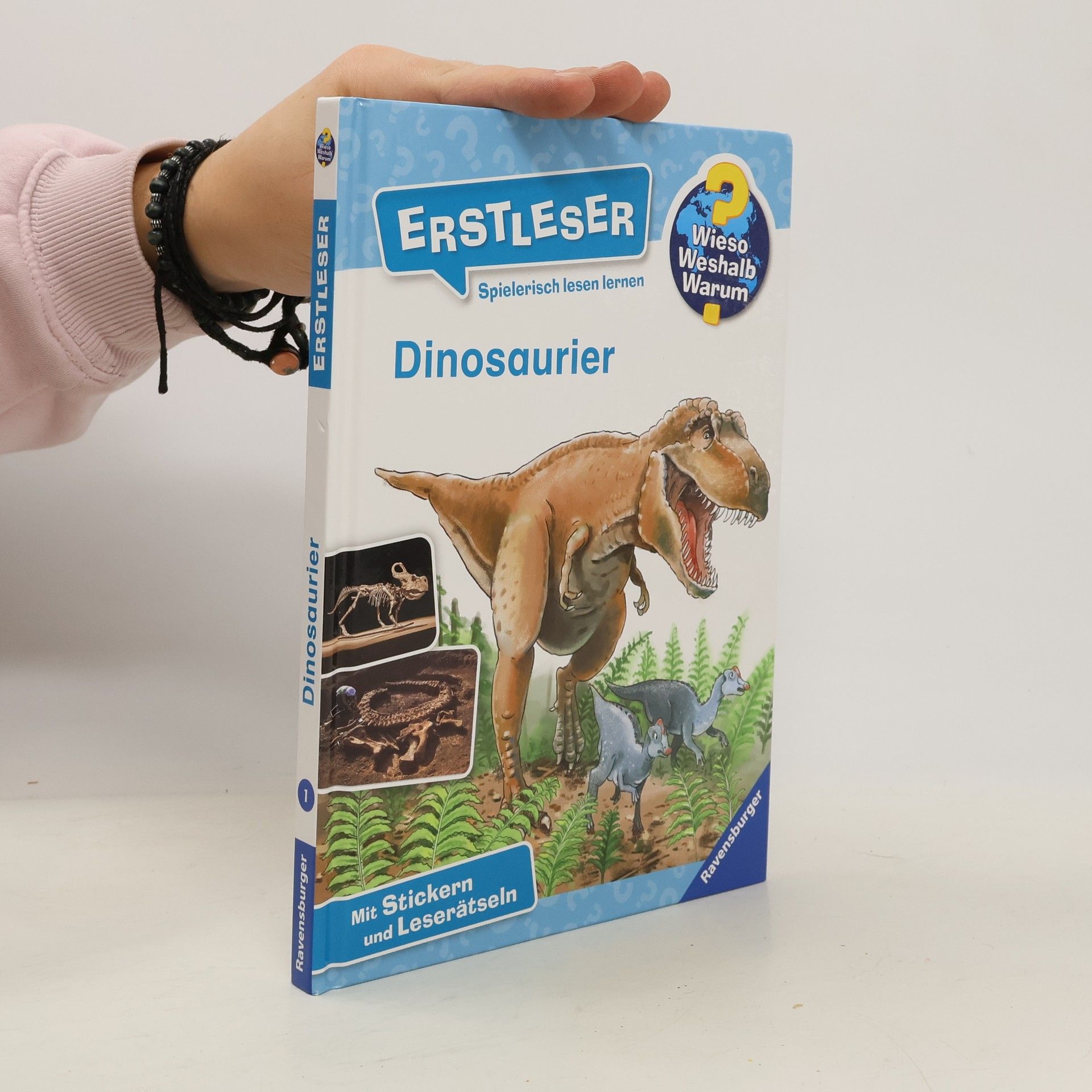 Viele Jahrmillionen waren sie die Herrscher unseres Planeten: die Dinos. Ob T-Rex, Triceratops oder Stegosaurus – hier können Erstleser die Welt der gigantischen Echsen selbständig entdecken. Sie erfahren, wie die Urzeitriesen lebten, warum sie ausstarben und wie man Fossilien erforscht. Leicht verständliche Texte, anschauliche Illustrationen und Fotos helfen beim Lesen lernen. Und für jede Menge Spaß sorgen Sticker, ein Spiel und viele Rätsel. Wieso? Weshalb? Warum? Erstleser Die Sachbuchreihe für Kinder ab der 2. Lesestufe Lesetraining, Sachwissen und Spielspaß in einem! Mit der Reihe Wieso? Weshalb? Warum? Erstleser erschließen sich Kinder ihre Lieblingsthemen selbst. In vier Kapiteln beantworten die Bücher brennende Kinderfragen in kurzen, leicht verständlichen Sätzen. Wie lebt man auf einer Raumstation? Welche Sprache sprechen Wale? Wie gefährlich ist ein Vulkan? Illustrationen und Fotos helfen den Kindern dabei, das Gelesene zu verstehen. Zusätzlich gibt es am Ende jedes Kapitels Buchstaben- und Kreuzworträtsel, Suchbilder, Sudokus und vieles mehr. Ganze acht Seiten mit unterschiedlichsten Rätseln und ein Lesequiz laden zum Knobeln ein. Ein Leselotto-Spiel hilft beim Verständnis schwieriger Wörter. Auf einer Stickerseite zeigen Texte, wo welcher Aufkleber hingehört. Spielerisch lesen lernen wird hier großgeschrieben.