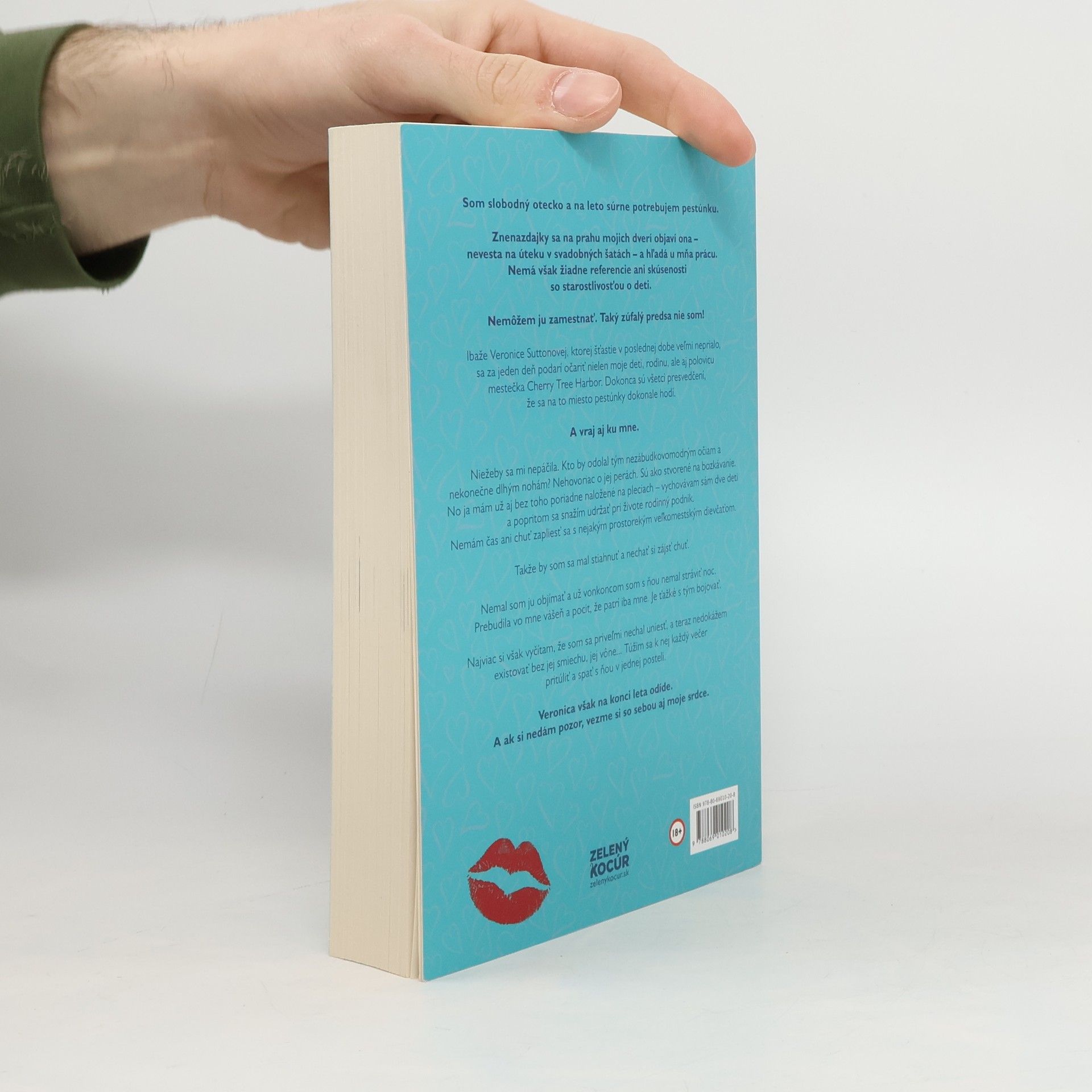 Som slobodný otecko a na leto súrne potrebujem pestúnku. Znenazdajky sa na prahu mojich dverí objaví ona – nevesta na úteku v svadobných šatách – a hľadá u mňa prácu. Nemá však žiadne referencie ani skúsenosti so starostlivosťou o deti. Nemôžem ju zamestnať. Taký zúfalý predsa nie som! Ibaže Veronice Suttonovej, ktorej šťastie v poslednej dobe veľmi neprialo, sa za jeden deň podarí očariť nielen moje deti, rodinu, ale aj polovicu mestečka Cherry Tree Harbor. Dokonca sú všetci presvedčení, že sa na to miesto pestúnky dokonale hodí. A vraj aj ku mne. Niežeby sa mi nepáčila. Kto by odolal tým nezábudkovomodrým očiam a nekonečne dlhým nohám? Nehovoriac o jej perách. Sú ako stvorené na bozkávanie. No ja mám už aj bez toho poriadne naložené na pleciach – vychovávam sám dve deti a popritom sa snažím udržať pri živote rodinný podnik. Nemám čas ani chuť zapliesť sa s nejakým prostorekým veľkomestským dievčaťom. Takže by som sa mal stiahnuť a nechať si zájsť chuť. Nemal som ju objímať a už vonkoncom som s ňou nemal stráviť noc. Prebudila vo mne vášeň a pocit, že patrí iba mne. Je ťažké s tým bojovať. Najviac si však vyčítam, že som sa priveľmi nechal uniesť, a teraz nedokážem existovať bez jej smiechu, jej vône... Túžim sa k nej každý večer pritúliť a spať s ňou v jednej posteli. Veronica však na konci leta odíde. A ak si nedám pozor, vezme si so sebou aj moje srdce.