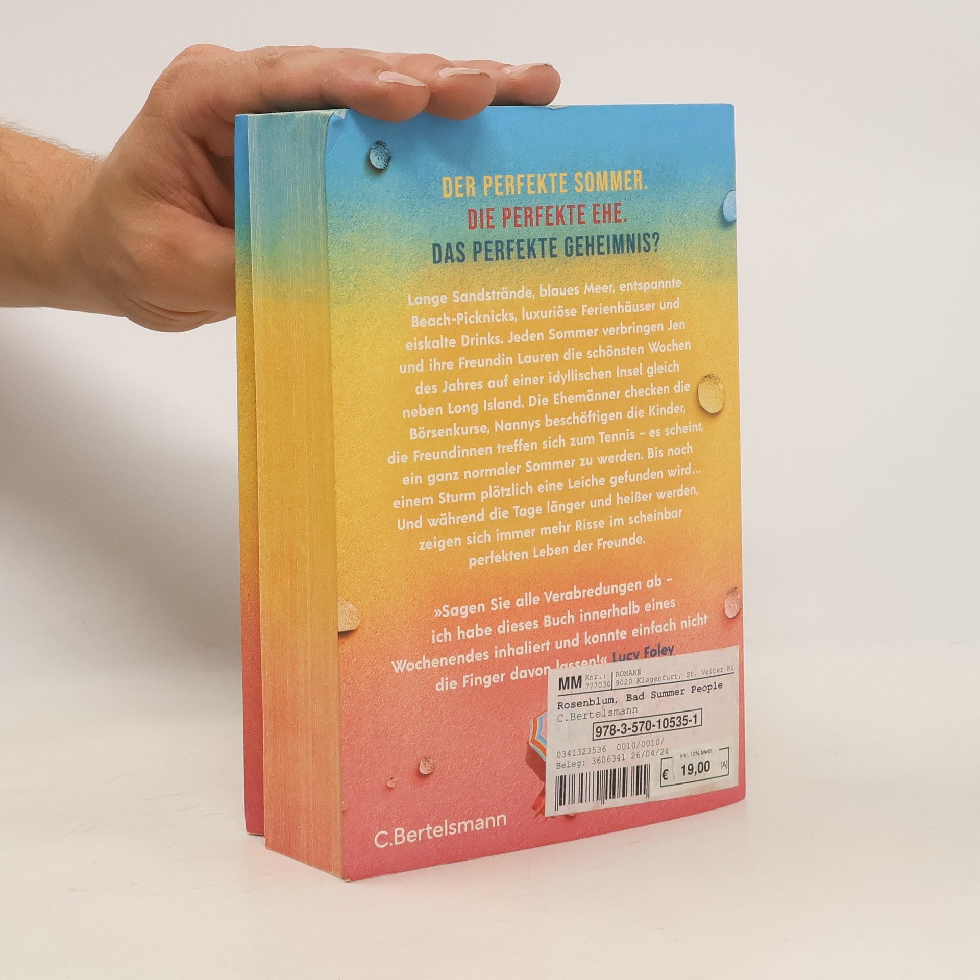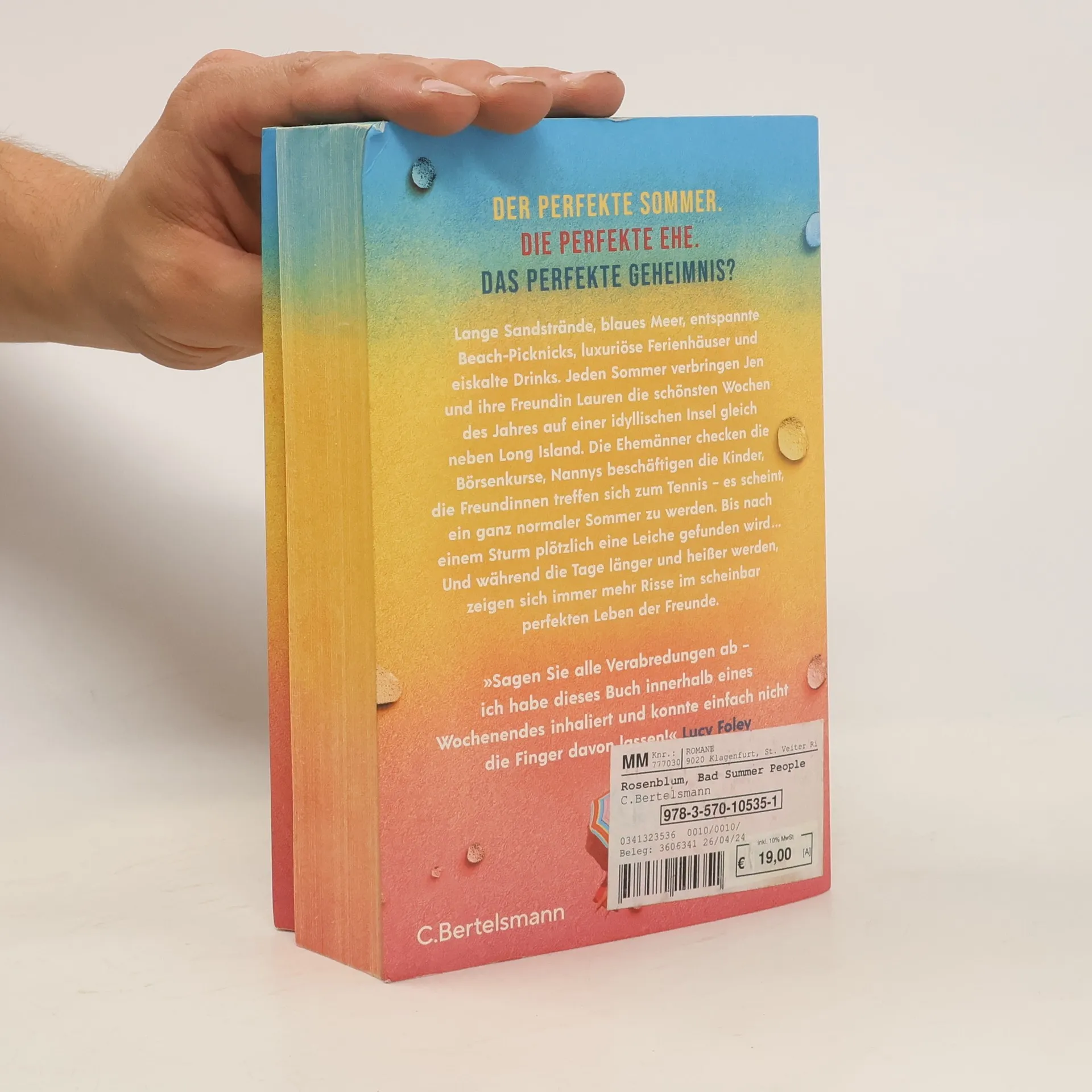 Der perfekte Sommer. Die perfekte Ehe. Das perfekte Geheimnis? Jeden Sommer lassen Jen Weinstein und ihre Freundin Lauren Parker ihr privilegiertes Leben in New York hinter sich, um die schönsten Wochen des Jahres auf Fire Island zu verbringen, einer idyllischen Düneninsel, gleich neben Long Island. Hier residiert „altes Geld“, man kennt sich seit Jahren und vertreibt sich die Zeit mit Tennis, kühlen Cocktails im Clubhaus und Beach-Picknicks. Die Ehemänner checken die Börsenkurse, bei Jen und ihren Freundinnen hat längst das Rennen auf den neuen attraktiven Tennislehrer begonnen – es scheint, ein ganz normaler Sommer zu werden. Bis nach einem Sturm eine Leiche in einer Böschung gefunden wird … Und während die Tage länger und heißer werden, zeigen sich immer mehr Risse im scheinbar perfekten Leben von Jen und ihren Freunden: Wer schläft mit wem? Wem ist das Geld ausgegangen? Und: Wer hat mit wem noch eine Rechnung offen …? Die perfekte Sommerlektüre, frisch, sexy, spannend und ganz einfach beste Unterhaltung für die heißesten Tage des Jahres! „Sagen Sie alle Verabredungen ab – ich habe dieses Buch innerhalb eines Wochenendes inhaliert und konnte einfach nicht die Finger davon lassen!“ Lucy Foley Lieferbarkeit in zwei Versionen (mit und ohne Farbschnitt). Es wird je nach Verfügbarkeit geliefert