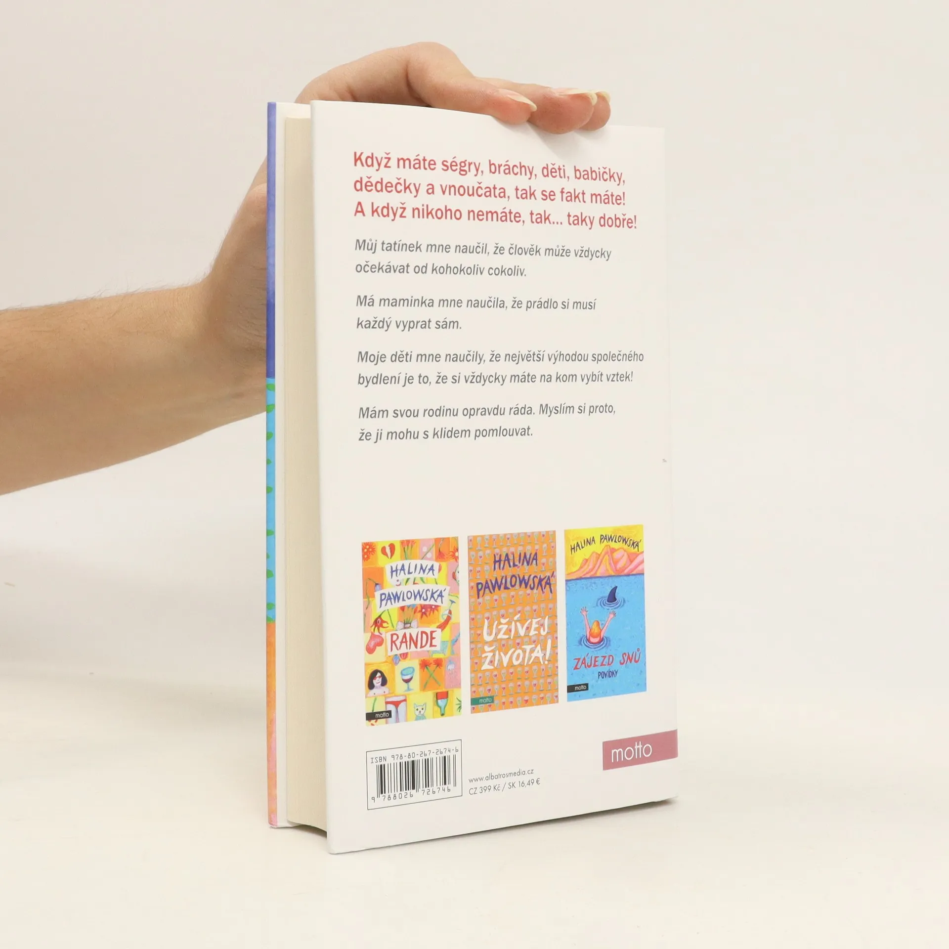 Oblíbená spisovatelka a scenáristka přichází s knihou humorných povídek ze života svého, ale i ostatních členů své široké rodiny. Můj tatínek mne naučil, že člověk může vždycky očekávat od kohokoliv cokoliv. Má maminka mne naučila, že prádlo si musí každý vyprat sám. Moje děti mne naučily, že největší výhodou společného bydlení je to, že si vždycky máte na kom vybít vztek! Mám svou rodinu opravdu ráda. Myslím si proto, že ji mohu s klidem pomlouvat. Nakladatelská anotace.