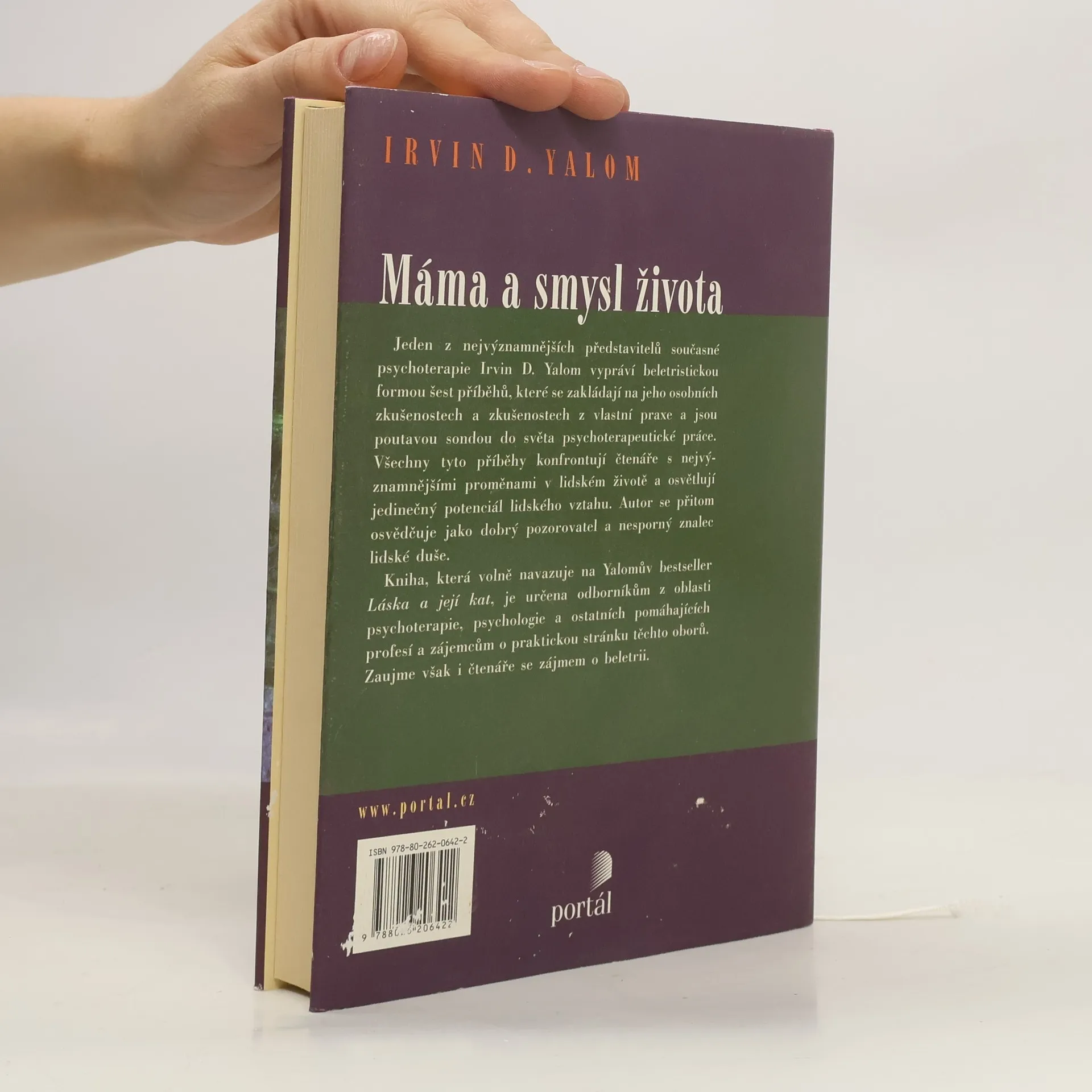 Máma a smysl života je dlouho očekávaným volným pokračováním Yalomova bestselleru Láska a její kat. V této knize se jeden z nejvýznamnějších současných psychoterapeutů pokusil být současně vypravěčem a učitelem. Tam, kde se tyto dvě role dostaly do sporu a autor musel volit mezi vložením pikantní pedagogické poznámky a udržením dramatického tempa příběhu, téměř vždy dává přednost příběhu a své pedagogické poslání se pokouší naplnit nepřímo. V šesti příbězích - jednom vlastním Máma a smysl života a pěti příbězích svých klientů Výlety s Paulou, Jižní útěcha, Sedm lekcí v terapii zármutku pro pokročilé, Dvojitá expozice, Prokletí maďarské kočky - se pokouší setřít hranice mezi beletrií a odbornými publikacemi. Přibližuje svěžím jazykem existenciální terapeutické přístupy, dynamiku zármutku ze ztráty blízké osoby, nastiňuje i problémy vyplývající ze vztahu mezi klientem a terapeutem, zvažuje míru upřímnosti, důvěrnost informací o pacientech, průhlednost terapeuta aj. Kniha zaujme odborníky pomáhajících profesí i zájemce o témata z oblasti psychoterapie a psychologie.