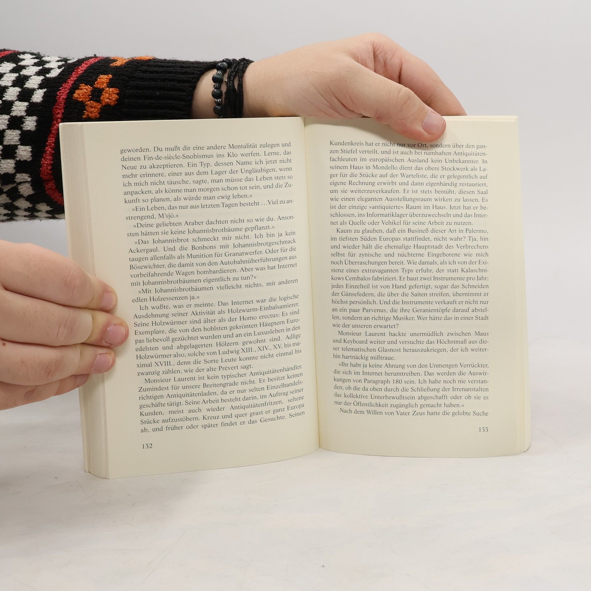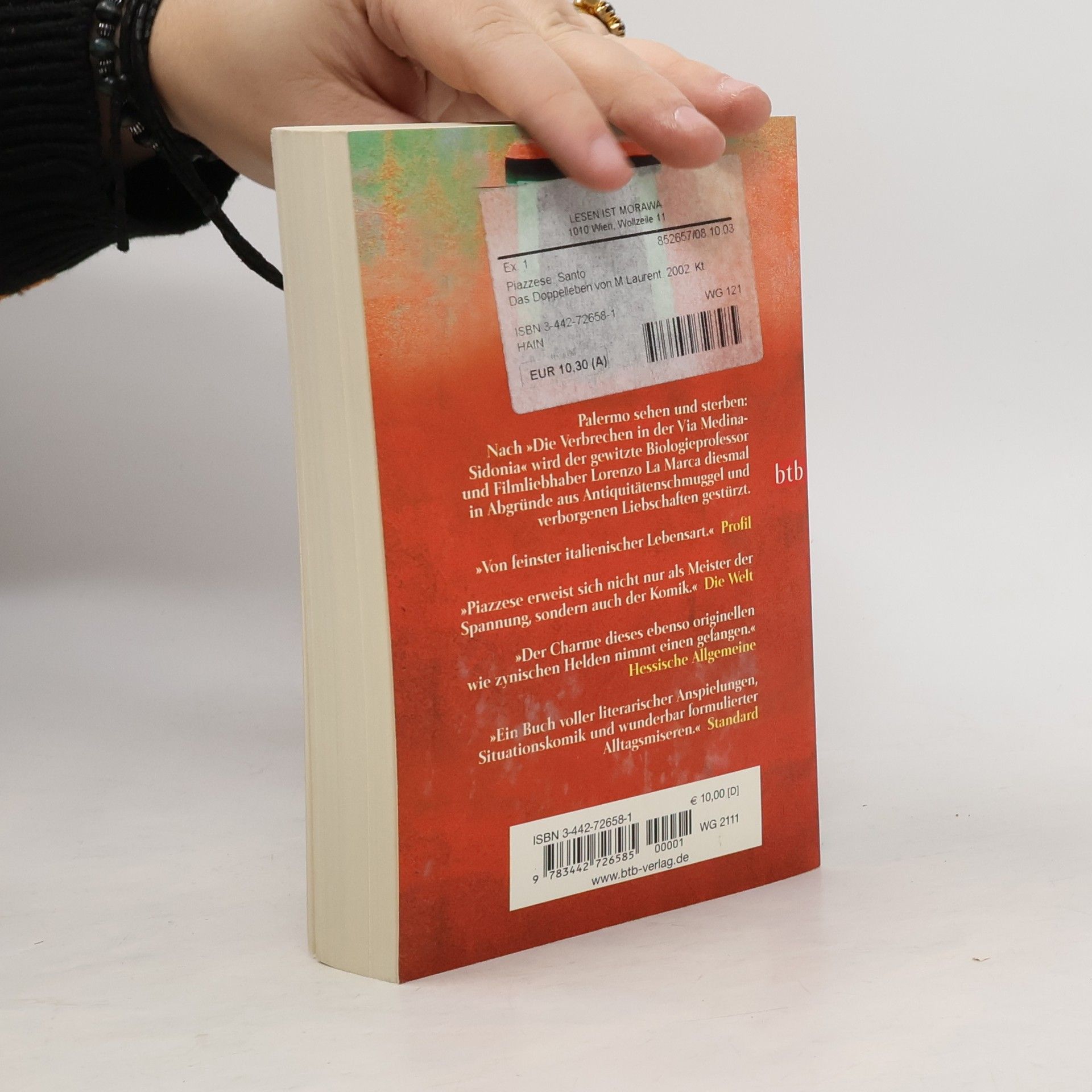 Es ist Nacht in Palermo, als Lorenzo La Marca in einer Lache aus Blut auf die Leiche des Antiquitätenhändlers Umberto Ghini stößt. Das vermeintliche Blut entpuppt sich bald als Regenwasser aus einem umgestürzten rostigen Fass. Die Leiche jedoch ist echt. Und La Marca bleibt nicht lange Zaungast: Der Vater seiner heimlichen Freundin Michelle Laurent wird unter Mordverdacht verhaftet. Er hatte ein Verhältnis mit der Witwe Ghini und teilte auch andere Neigungen des Toten. Beim Versuch, dem guten Herrn Laurent aus der Patsche zu helfen, wird La Marca nachhaltiger in den Mordfall verwickelt, als ihm lieb ist. Und auch der Mörder sieht La Marcas Einsatz mit Besorgnis. Denn nicht zuletzt das botanische Wissen und die Menschenkenntnis des Biologieprofessors und Palermo-Liebhabers La Marca bringen diesen auf die Spuren des gefährlichen Spiels mit doppeltem Boden, das Umberto Ghini das Leben gekostet hat. Auch in seinem zweiten unfreiwilligen Einsatz erweist sich La Marca als geistreicher Beobachter, dem jede Gelegenheit recht ist, scharfsinnig über Gott und die Welt zu plaudern. Denn Santo Piazzese liebt es zu erzählen und für den charmanten Helden seines literarischen Krimis hat er einen ganz eigenen Ton gefunden: amüsant, beschwingt, geistreich und der Tradition sizilianischer Kultur wohl bewusst. Wie schon in „Die Verbrechen in der Via Medina-Sidonia“ bietet ihm die kriminalistische Handlung den roten Faden, in den seine ironischen Betrachtungen verwoben sind. Und wieder erweckt er seine Heimatstadt Palermo zum Leben, mit ihrer Geschichte, der Küche, dem Klima und ihrer ganzen Farbenpracht. „Piazzese erweist sich nicht nur als Meister der Spannung, sondern auch der Komik.“ Die Welt „Piazzeses Romane zeichnet sich durch eine schillernd-stimmige Schilderung Palermos und durch scharfsinnige Reflexionen über Siziliens Gesellschaft aus.“ Woz, Zürich „Der Charme dieses ebenso originellen wie zynischen Helden nimmt einen gefangen.“ Hessische Allgemeine