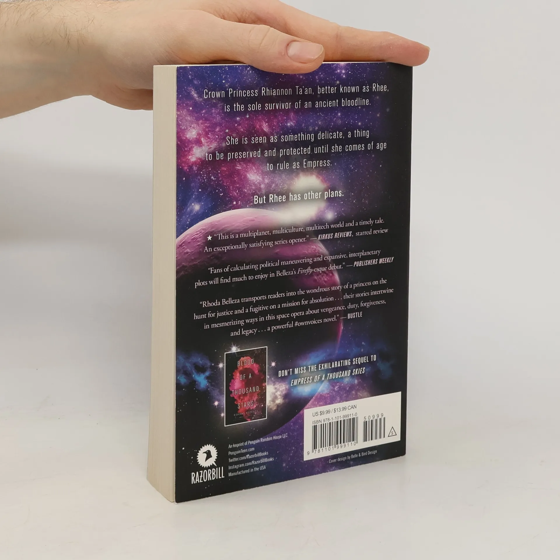 For fans of Pierce Brown and Firefly comes an epic sci-fi fantasy, hailed as "an important and relevant novel" by The New York Times. Empress Rhee, also known as Crown Princess Rhiannon Ta’an, is the sole surviving heir to a powerful dynasty. She’ll stop at nothing to avenge her family and claim her throne. Fugitive Aly has risen above his war refugee origins to find fame as the dashing star of a DroneVision show. But when he’s falsely accused of killing Rhee, he's forced to prove his innocence to save his reputation – and his life. Madman With planets on the brink of war, Rhee and Aly must confront a ruthless evil that threatens the fate of the entire galaxy. Rhoda Belleza crafts a powerful saga of vengeance, warfare, and the true meaning of legacy in this exhilarating debut, perfect for readers of Marissa Meyer's Lunar Chronicles and Jay Kristoff and Amie Kaufman's Illuminae Files.
