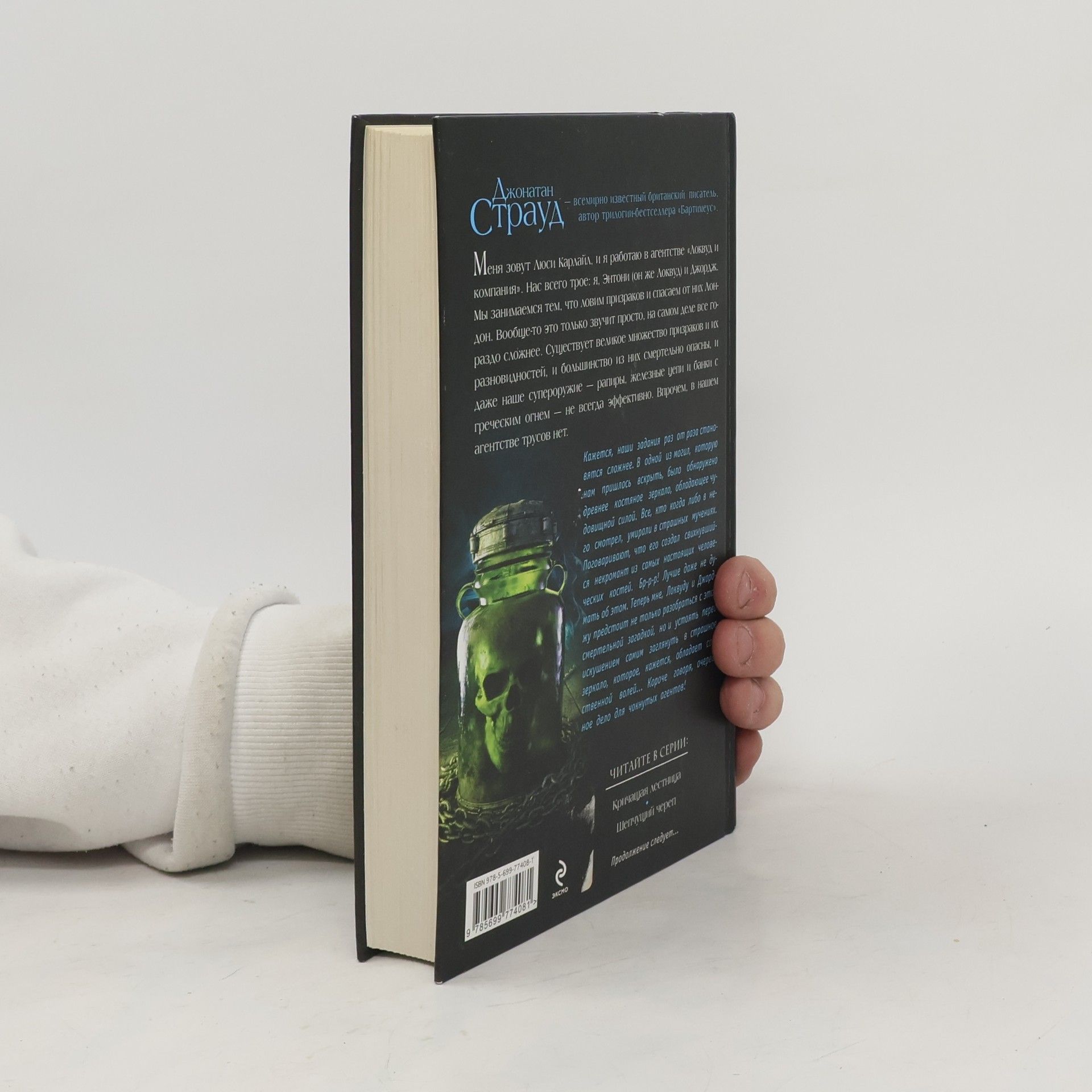 Меня зовут Люси Карлайл и я работаю в агентстве "Локвуд и компания". Нас всего трое: я, Энтони (он же Локвуд) и Джордж. Мы занимаемся тем, что ловим призраков и спасаем от них Лондон. Вообще-то, это только звучит просто, на самом деле все гораздо сложнее. Существует великое множество призраков и их разновидностей, и большинство из них смертельно опасны, и даже наше супероружие: рапиры, железные цепи и банки с греческим огнем - не всегда эффективно. Впрочем, в нашем агентстве трусов нет. Кажется, наши задания раз от раза становятся сложнее. В одной из могил, которую нам пришлось вскрыть, было обнаружено древнее костяное зеркало, обладающее чудовищной силой. Все, кто когда либо в него смотрел, умирали в страшных мучениях. Поговаривают, что его создал свихнувшийся некромант из самых настоящих человеческих костей. Бр-р-р! Лучше даже не думать об этом. Теперь мне, Локвуду и Джорджу предстоит не только разобраться с этой смертельной загадкой, но и устоять перед искушением самим заглянуть в страшное зеркало, которое, кажется, обладает собственной волей... Короче говоря, очередное дело для чокнутых агентов!