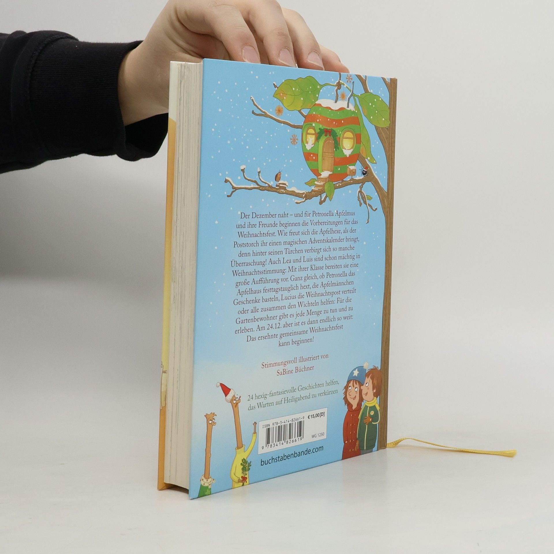 Band 10 der beliebten Bestseller-Reihe rund um Apfelhexe Petronella Apfelmus Der Dezember naht - und für Petronella Apfelmus und ihre Freunde beginnen die Vorbereitungen für das Weihnachtsfest. Wie freut sich die Apfelhexe, als der Poststorch ihr einen magischen Adventskalender bringt, denn hinter seinen Türchen verbirgt sich so manche Überraschung! Auch Lea und Luis sind schon mächtig in Weihnachtsstimmung: Mit ihrer Klasse bereiten sie eine große Aufführung vor. Ganz gleich, ob Petronella das Apfelhaus festtagstauglich hext, die Apfelmännchen Geschenke basteln, Lucius die Weihnachtspost verteilt oder alle zusammen den Wichteln helfen: Für die Gartenbewohner gibt es jede Menge zu tun und zu erleben. Am 24.12. aber ist es dann endlich so weit: Das ersehnte, gemeinsame Weihnachtsfest kann beginnen! Fantasievoll und weihnachtlich illustriert von SaBine Büchner 24 hexig-fantasievolle Geschichten helfen, das Warten auf Heiligabend zu verkürzen Ein Quiz auf Antolin bietet eine besondere Motivation für Selbstleser: innen