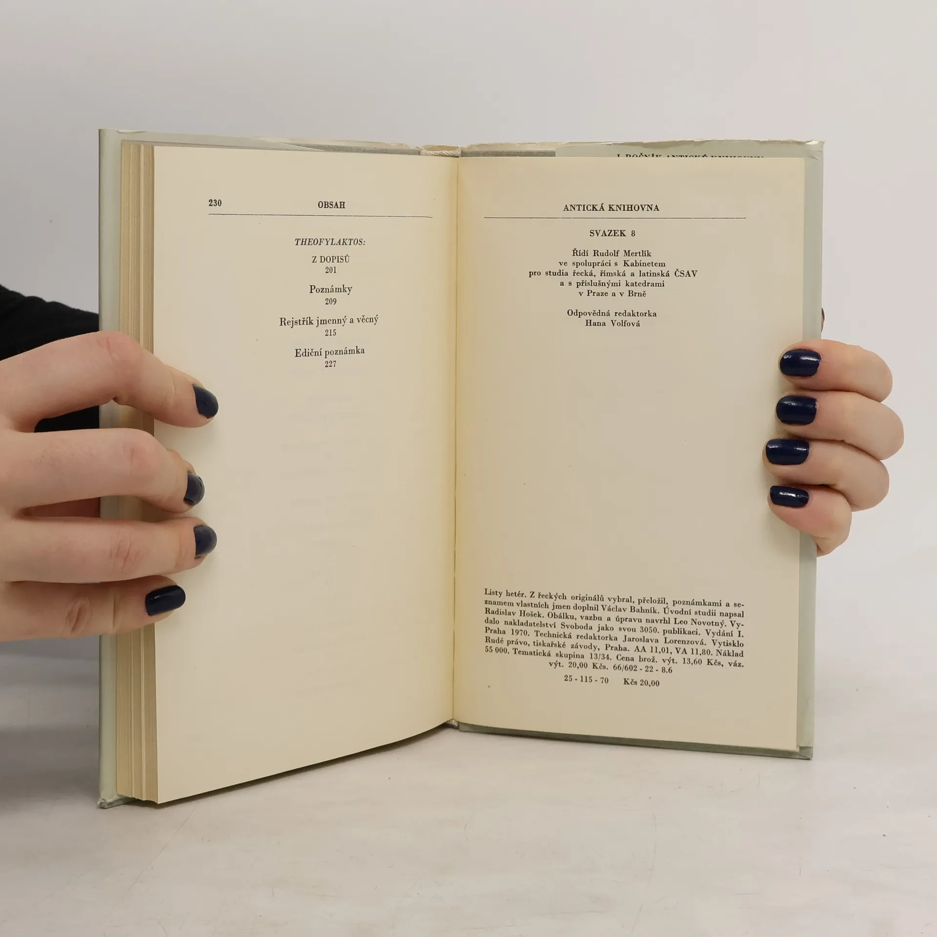 Ailiános: Z dopisů, Alkifrón: Dopisy rybářů, Dopisy vesničanů, Dopisy příživníků, Dopisy hetér, Aristainetos: Dopisy, Filostratos: Milostné dopisy, Lúkiános: Hovory hetér, Theofylaktos: Z dopisů. Milostné dopisy hetér patří k pozdním výtvorům řecké literatury. Jsou to elegantně a pikatně líčené scény řeckého života a představují nesmírně cenný kulturně historický pramen k poznání soukromého života řeckého člověka. Známe jména bezmála sto padesáti řeckých hetér – kněžen lásky –, jejichž milostné listy nic neztratily na svém půvabu dodnes. Vždyť kromě pouličních holek bylo mezi nimi mnoho mladých žen, které absolvovaly zvláštní školy pro hetéry, osvojily si bezvadné společenské chování, dovedly zpívat, tančit, hrát na různé nástroje, ale vyznaly se i v literatuře a ve filosofii. Není divu, že hetéry byly pro své estetické i etické hodnoty nezřídka i trvale milovány. Názor tehdejší společnosti na tyto umělkyně lásky, oddávající se mužům sice za peníze, ale většinou podle vlastního zalíbení, nebyl dotčen pokřivujícím vztahem soukromého vlastníka k bytosti hmotně i duchovně podřízené. V této rozkošné knížce milostné korespondence hetér se zvlášť zřetelně zrcadlí lidské vztahy ve světě antiky, vábící současného člověka, zmítaného rozpory moderní civilizace, svou kouzelnou bezprostředností a otevřeností.
