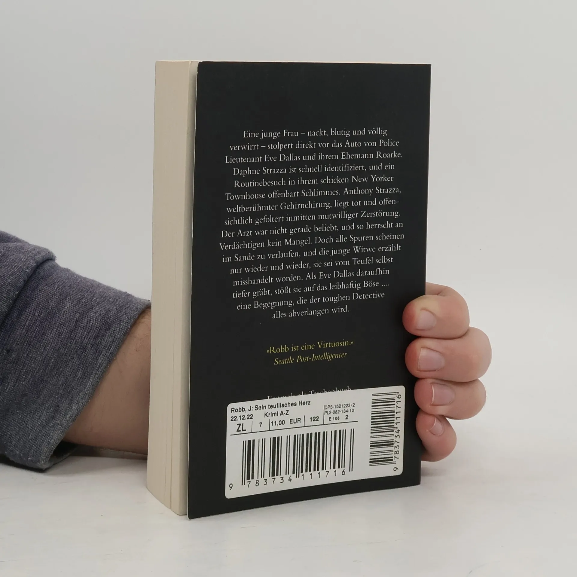 Der neue Pageturner aus der Erfolgsserie von J. D. Robb! Eine junge Frau – nackt, blutig und völlig verwirrt – stolpert direkt vor das Auto von Police Lieutenant Eve Dallas und ihrem Ehemann Roarke. Daphne Strazza ist schnell identifiziert, und ein Routinebesuch in ihrem schicken New Yorker Townhouse offenbart Schlimmes. Anthony Strazza, weltberühmter Gehirnchirurg, liegt tot und offensichtlich gefoltert inmitten mutwilliger Zerstörung. Der Arzt war nicht gerade beliebt, und so herrscht an Verdächtigen kein Mangel. Doch alle Spuren scheinen im Sande zu verlaufen, und die junge Witwe erzählt nur wieder und wieder, sie sei vom Teufel selbst misshandelt worden. Als Eve Dallas daraufhin tiefer gräbt, stößt sie auf das leibhaftig Böse .... eine Begegnung, die der toughen Detective alles abverlangen wird.