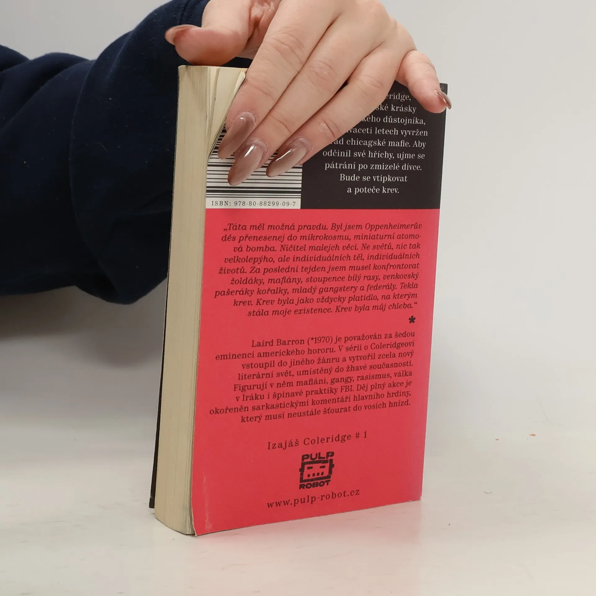 Několika cenami ověnčený Laird Barron (*1970), považovaný za šedou eminenci amerického hororu, tentokrát přichází s drsným thrillerem. Krev je můj chleba je první díl nové série s hrdinou Izajášem Coleridgem, synem maorské krásky a amerického důstojníka, který je po dvaceti letech mezi chicagskou mafií vržen do pátrání po mladé dívce. Pokud jste si oblíbili Nesbøho hrdinu Harryho Holea, nepochybně si zamilujete i svérázného Izajáše. Barron vytvořil v této sérii zcela nový literární svět, umístěný do žhavé současnosti. Děj, okořeněný sarkastickými komentáři hlavního hrdiny, který musí neustále šťourat do vosích hnízd, je plný akce... a krve.