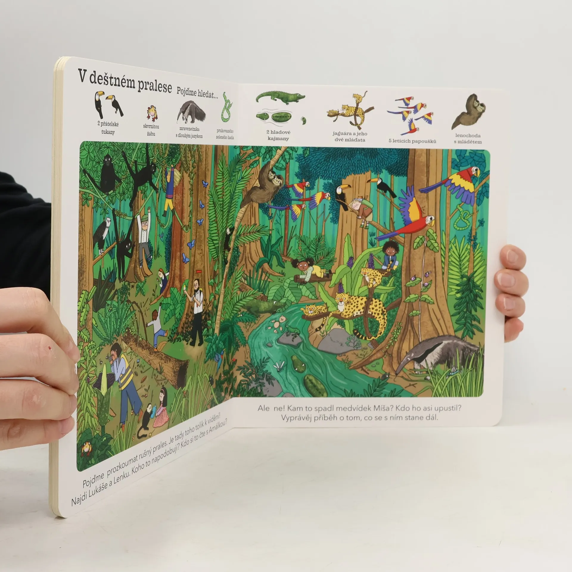 Prožijte se svými dětmi zábavné společné chvilky a popusťte uzdu fantazii s touto knihou plnou zajímavých postav, legračních ilustrací a zábavných příběhů! Kniha s pevnými stránkami, která je ideální pro předškoláky i zdatné čtenáře – naučí se v ní rozeznávat postavy i hledat a počítat zajímavé předměty na obrázcích plných zábavných scén. Tato skvělá interaktivní kniha vaše děti vtáhne do děje a povzbudí je, aby se zapojily do akce. Na každé stránce je vyobrazené jiné místo, třeba deštný prales, podmořský svět nebo statek. A hlavně je všude plno zajímavých postav! Děti mohou na jednotlivých stránkách pozorovat rozličné věci a tvory, ale také jednotlivé žáky. Následně se naučí je spočítat, pojmenovat a vymyslet jim příběh. Na každé straně jsou také drobné nápovědy, které podpoří všímavost, konverzaci a zvídavost.