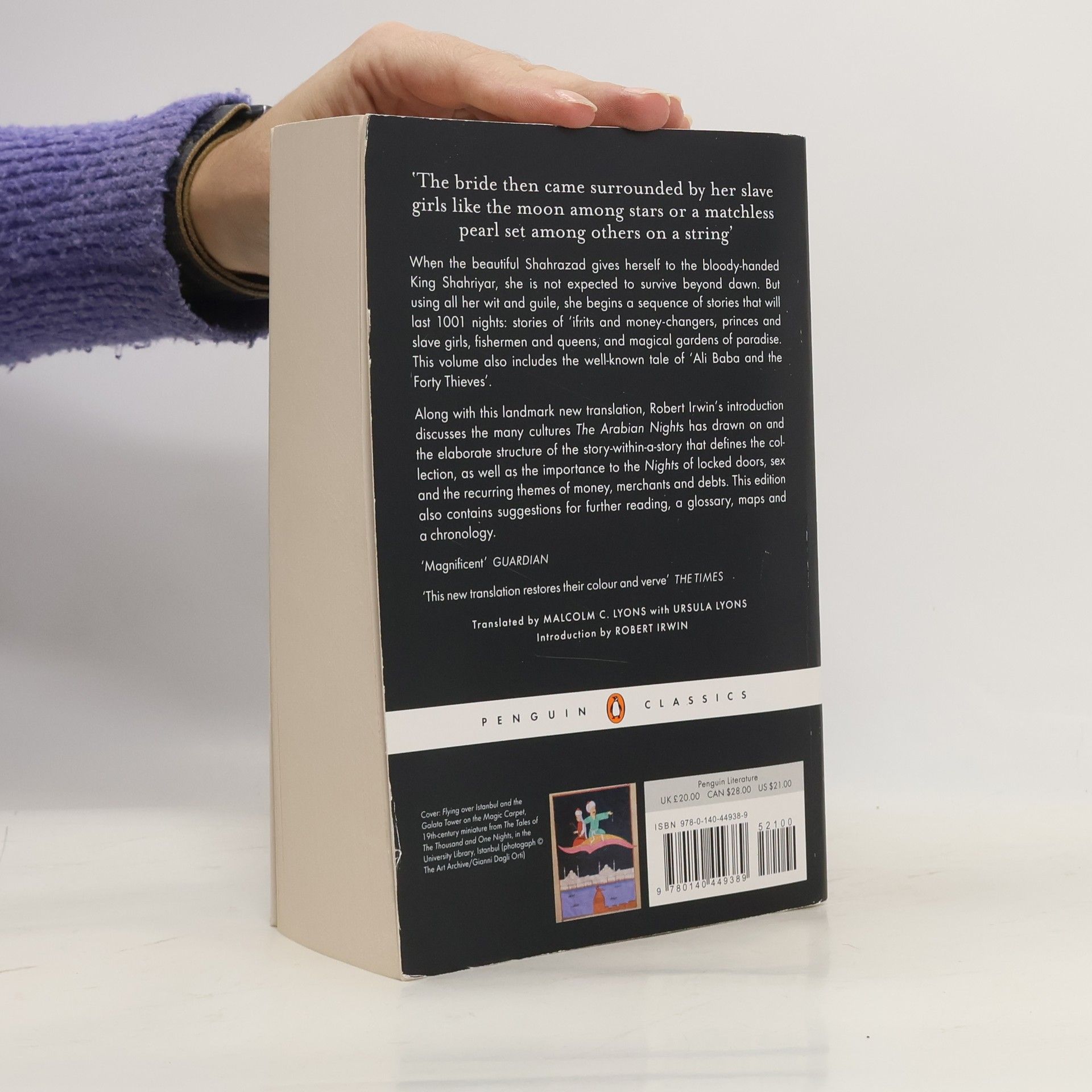 'The bride then came surrounded by her slave girls like the moon among stars or a matchless pearl set among others on a string.'When the beautiful Shahrazad gives herself to the bloody-handed King Shahriyar, she is not expected to survive beyond dawn. But using her wit and guile, she begins a sequence of stories that will last 1001 nights: stories of 'ifrits and money-changers, prices and slave girls, fishermen and queens, and magical gardens of paradise. This volume also includes the well-known tale of 'Ali Baba and the Forty Thieves'.Along with this landmark new translation, Robert Irwin's introduction discusses the many cultures The Arabian Nights has drawn on and the elaborate structure of the story-within-a-story that defines the collection, as well as the importance to the Nights of locked doors, sex, and the recurring themes of money, merchants and debts. This edition also contains suggestions for further reading, a glossary, maps and a chronology.
