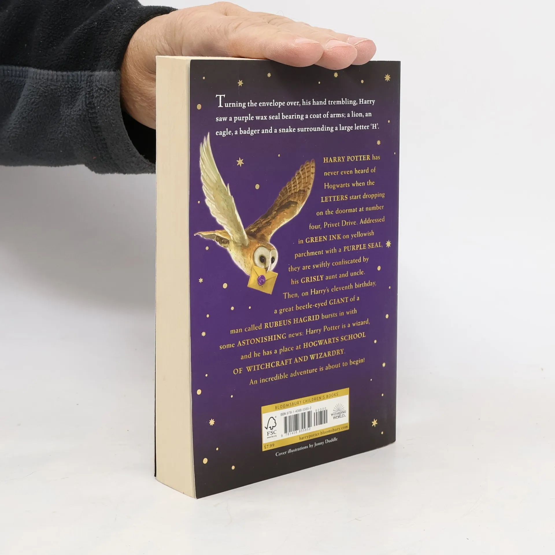 Harry Potter has never even heard of Hogwarts when the letters start dropping on the doormat at number four, Privet Drive. Addressed in green ink on yellowish parchment with a purple seal, they are swiftly confiscated by his grisly aunt and uncle. Then, on Harry's eleventh birthday, a great beetle-eyed giant of a man called Rubeus Hagrid bursts in with some astonishing news: Harry Potter is a wizard, and he has a place at Hogwarts School of Witchcraft and Wizardry. An incredible adventure is about to begin!These new editions of the classic and internationally bestselling, multi-award-winning series feature instantly pick-up-able new jackets by Jonny Duddle, with huge child appeal, to bring Harry Potter to the next generation of readers. It's time to PASS THE MAGIC ON .