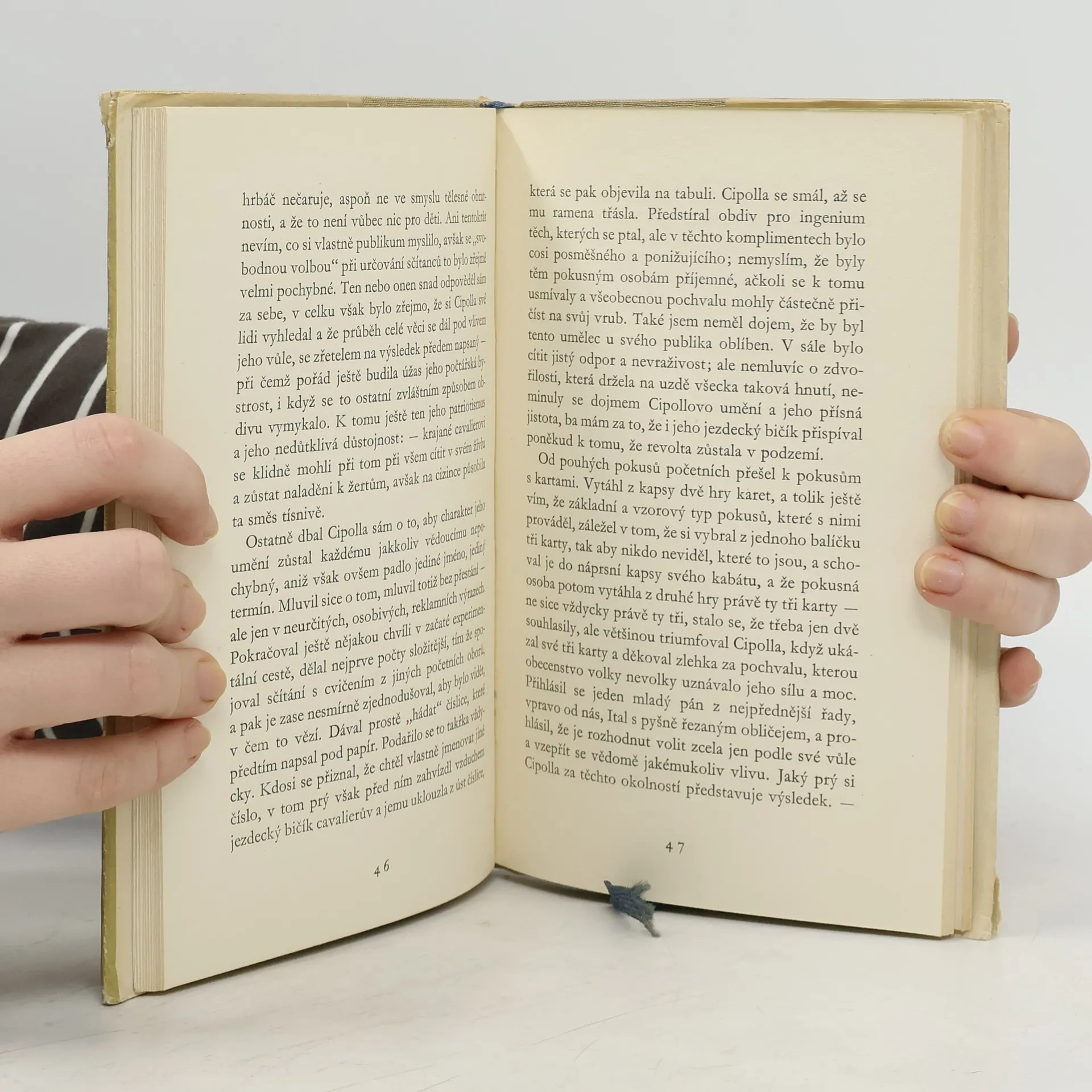 Dějovým jádrem novely, napsané na počátku let 30., je bizarní příběh, jehož byl autor svědkem na své prázdninové cestě po Itálii. Vylíčení představení potulného kouzelníka, jehož triky záležely především v hypnose, vrcholí tragicky kouzelníkovým zavražděním. Novela však přestovyznívá pocitem osvobození nad zlomením temné, člověka nenávidící síly kouzelníkovy. Tragické rozuzlení stejně jako předrážděná, dusivá atmosféra celé novely dávají tušit, že autorovým úmyslem nebylo jen prosté vylíčení zážitku z prázdninové cesty, nýbrž že jeho vyprávění směřuje k cíli daleko obecnějšímu a důsažnějšímu: k vylíčení života Itálie 30. let, ovládané a terorisované kejklířem a hypnotisérem Mussolinim.