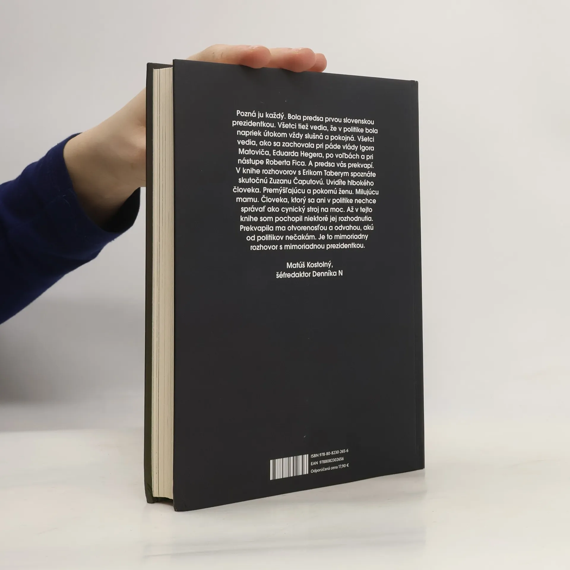 Dialóg Zuzany Čaputovej a šéfredaktora týždenníka Respekt Erika Taberyho trval viac ako dva roky. Aké je byť ženou vo vrcholnej politike a matkou dcér, na ktoré útočia politici? S čím sa musí vyrovnať hlava štátu zmietaného pandémiou covidu, v čase vypuknutia vojny na Ukrajine či v situácii, keď je spoločnosť mimoriadne polarizovaná? Aké to je, keď sa človek ocitne na čele krajiny a inštitúcie, ktorá ako jediná v štáte nie je kolektívnym orgánom? Erik Tabery chcel vidieť a pochopiť človeka, ktorý z tejto roly celých päť rokov nemôže vypadnúť ani na sekundu. Ženu, do ktorej si ľudia premietajú svoje frustrácie, ale aj nesplniteľné nádeje. A Zuzana Čaputová mu to dovolila s otvorenosťou, ktorá nemá medzi politikmi obdobu.