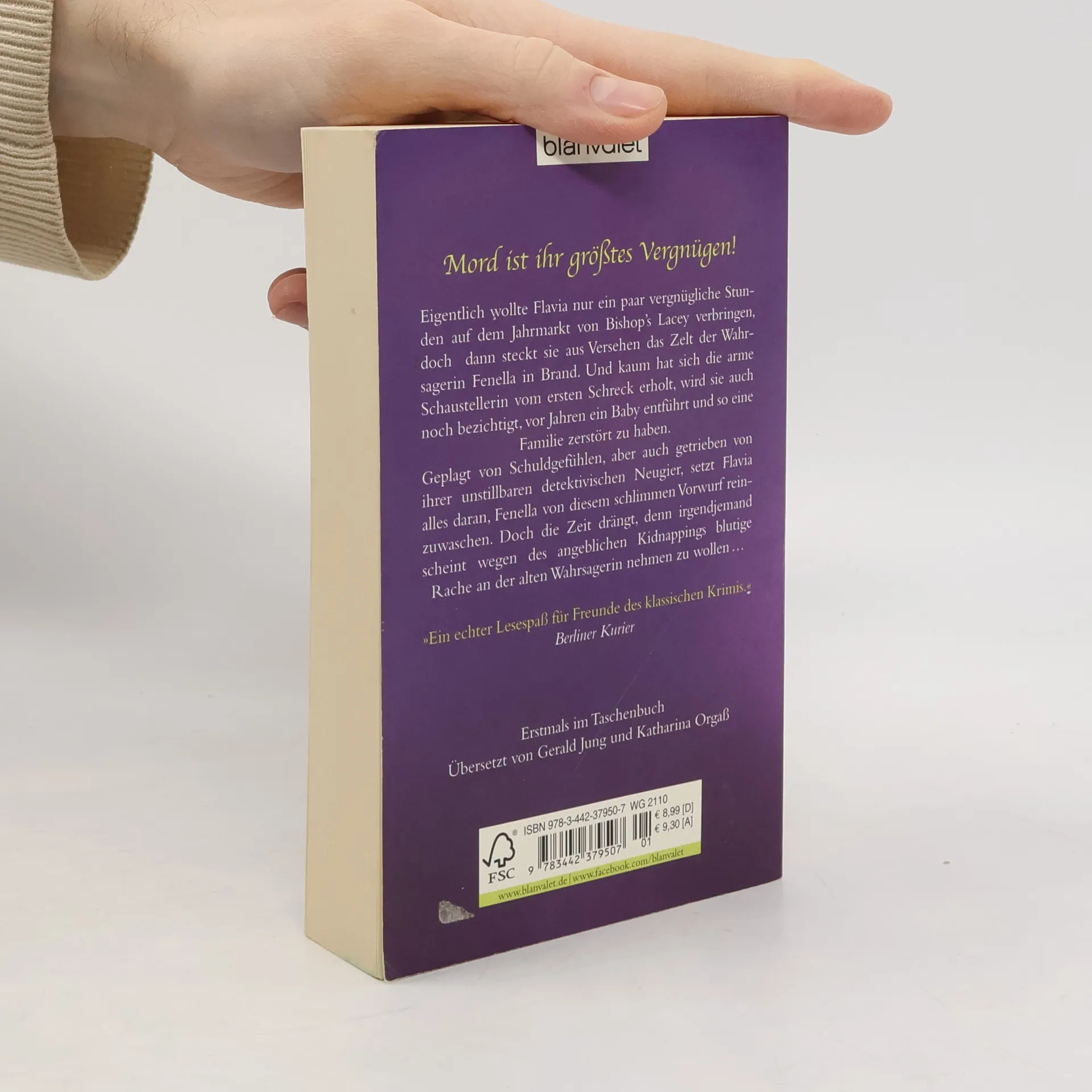 Eigentlich wollte Flavia nur ein paar vergnügliche Stunden auf dem Jahrmarkt von Bishop’s Lacey verbringen, doch dann steckt sie aus Versehen das Zelt der Wahrsagerin Fenella in Brand. Und wenig später wird die arme Schaustellerin auch noch bezichtigt, vor Jahren ein Baby entführt zu haben. Getrieben von ihrer unstillbaren detektivischen Neugier, setzt Flavia alles daran, Fenella von diesem Vorwurf reinzuwaschen. Doch die Zeit drängt, denn irgendjemand scheint wegen des Kidnappings blutige Rache an der alten Wahrsagerin nehmen zu wollen …Bradley/e393989.rhd\">http://www.randomhouse.de/Taschenbuch... --
