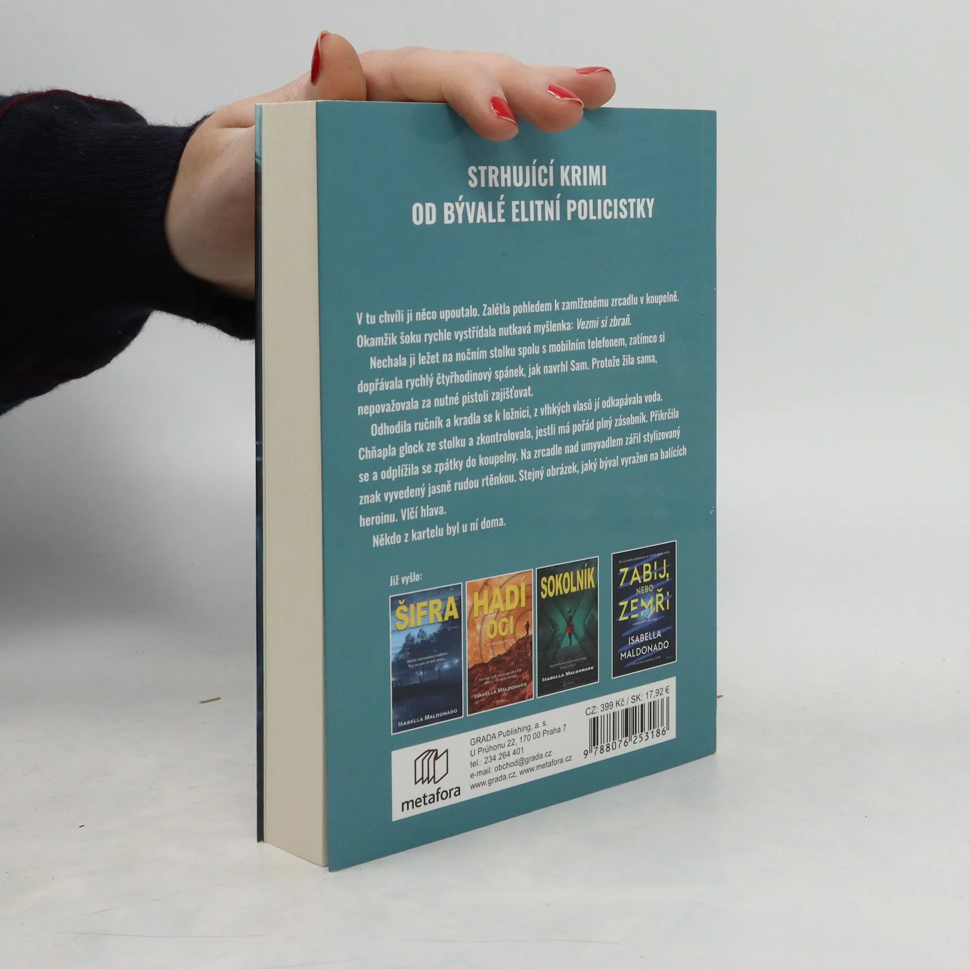 Detektiv Veranda Cruzová vede elitní protidrogový oddíl policie ve Phoenixu a má jediný, těžko splnitelný cíl: zničit nejmocnější zločinecký kartel na světě vedený Hectorem Villalobosem. Jen sama Veranda ví, že její posedlost kartelem má osobní a přísně tajný důvod – až do chvíle, kdy se její dvouletá práce v utajení zhroutí jako domeček z karet. Ona i její milovaná rodina se ocitnou v hledáčku obávaného drogového bosse Bartola a válka mezi strážci zákona a kartelem rázem získává velmi osobní příchuť. Tajná akce v poušti nabírá obrátky a Veranda s novým týmem z oddělení vražd je stále blíž. Dostat Bartola Villalobose je úkol číslo jedna, ale ani ona dosud netuší, jaké hrozivé tajemství se skrývá v minulosti… Je připravená vykoupit spravedlnost vlastním životem? Nová série od bestsellerové autorky, bývalé policistky a členky FBI Isabelly Maldonado. Vychází v překladu Dany Chodilové.
