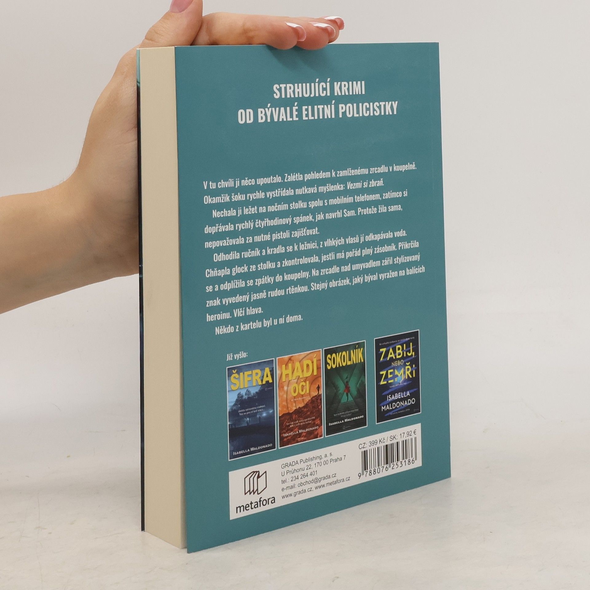 Detektiv Veranda Cruzová vede elitní protidrogový oddíl policie ve Phoenixu a má jediný, těžko splnitelný cíl: zničit nejmocnější zločinecký kartel na světě vedený Hectorem Villalobosem. Jen sama Veranda ví, že její posedlost kartelem má osobní a přísně tajný důvod – až do chvíle, kdy se její dvouletá práce v utajení zhroutí jako domeček z karet. Ona i její milovaná rodina se ocitnou v hledáčku obávaného drogového bosse Bartola a válka mezi strážci zákona a kartelem rázem získává velmi osobní příchuť. Tajná akce v poušti nabírá obrátky a Veranda s novým týmem z oddělení vražd je stále blíž. Dostat Bartola Villalobose je úkol číslo jedna, ale ani ona dosud netuší, jaké hrozivé tajemství se skrývá v minulosti… Je připravená vykoupit spravedlnost vlastním životem? Nová série od bestsellerové autorky, bývalé policistky a členky FBI Isabelly Maldonado. Vychází v překladu Dany Chodilové.