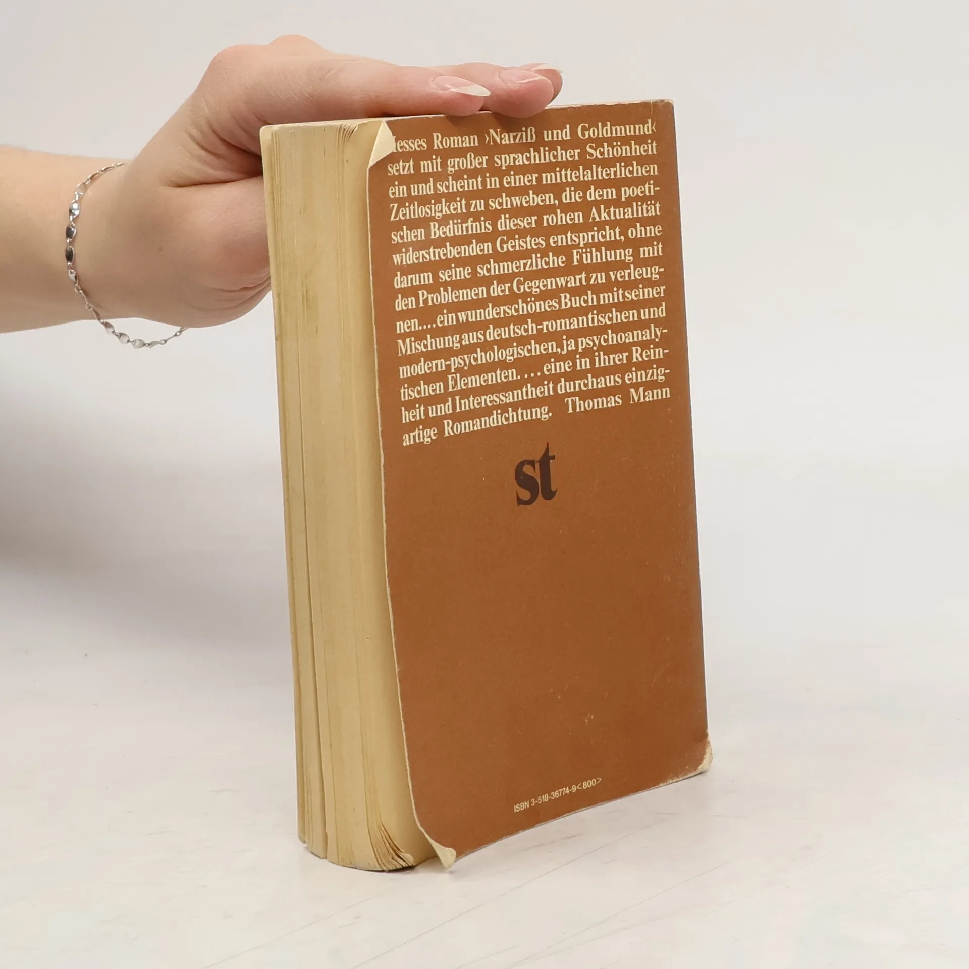 "Hesses Roman "Narziß und Goldmund" setzt mit großer sprachlicher Schönheit ein und scheint in einer mittelalterlichen Zeitlosigkeit zu schweben, die dem poetischen Bedürfnis dieses der rohen Aktualität widerstrebenden Geistes entspricht, ohne darum seine schmerzliche Fühlung mit den Problemen der Gegenwart zu verleugnen...ein wunderschönes Buch mit seiner Mischung aus deutsch-romantischen und modern-psychologischen, ja psychoanalytischen Elementen...eine in ihrer Reinheit und Interessantheit durchaus einzigartige Romandichtung." Thomas Mann
