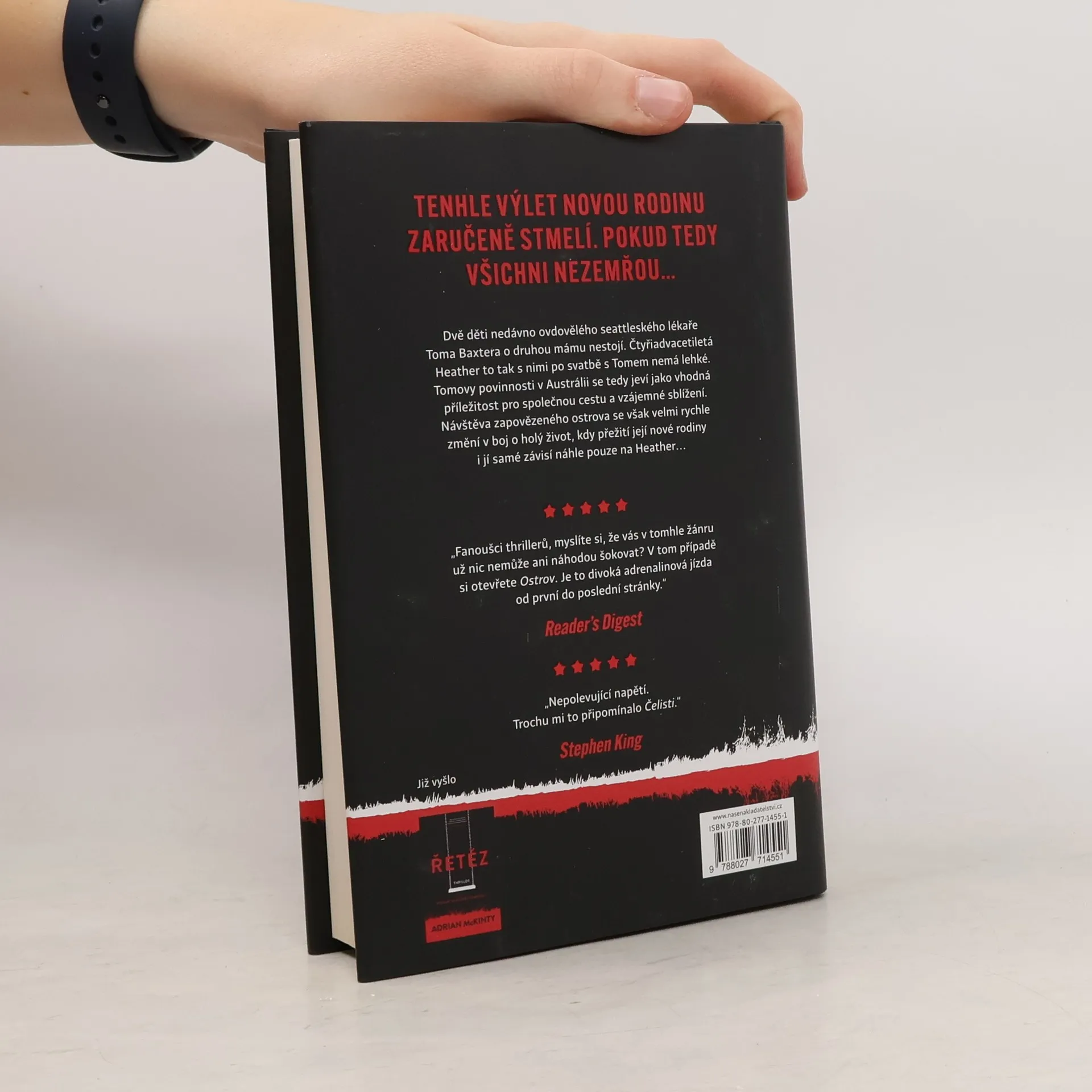 Thriller uznávaného autora se odehrává v divočině na izolovaném australském ostrově, kde bojují o život dva sourozenci a jejich nevlastní matka. Po přestěhování do Seattlu se Heather provdá za Toma Baxtera, ovdovělého lékaře s malým synem a dospívající dcerou. Pracovní dovolená na vzdáleném kontinentě jim připadá jako výborný způsob, jak novou rodinu stmelit, ale v australské pustině hrají unavené a pásmovou nemocí stižené děti "nové mamince" pěkně na nervy. Když na výletě objeví odlehlý a návštěvníkům nepřístupný Holandský ostrov, podaří se jim dostat na přívoz a podniknout dobrodružnou výpravu do míst bez signálu. Na ostrově ovládaném semknutou skupinou místních ale všechno nabere podivný směr. Po náhlé nehodě Heather s dětmi zůstanou bez Toma a musejí utíkat sami. Na Heather leží odpovědnost za záchranu, v drsné australské divočině číhá bezpočet nebezpečí a místní je hodlají zabít. Heather se celý život podceňovala, ale nyní ví, že pouze ona může novou rodinu přivést zpátky domů. Nakladatelská anotace. Kráceno.