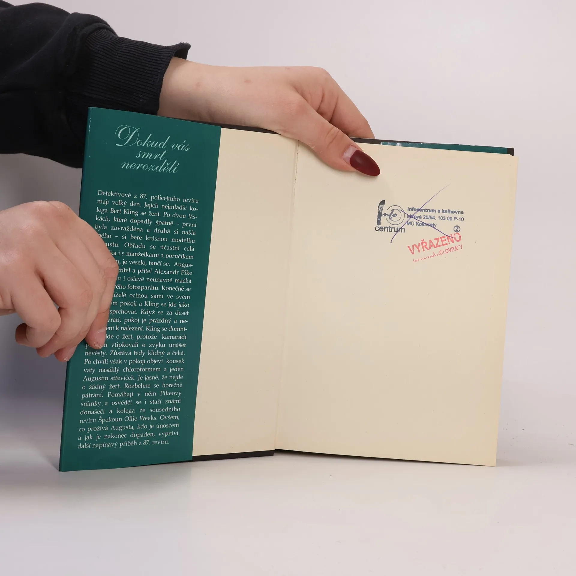 Detektivové z 87. policejního revíru mají velký den. Jejich nejmladší kolega Bert Kling se žení. Po dvou láskách, které dopadly špatně – první byla zavražděna a druhá si našla jiného – si bere krásnou modelku Augustu. Obřadu se účastní celá pátračka i s manželkami a poručíkem Byrnesem, je veselo, tančí se. Augustin starý ctitel a přítel Alexandr Pike při obřadu i oslavě neúnavně mačká spoušť svého fotoaparátu. Konečně se novomanželé octnou sami ve svém hotelovém pokoji a Kling se jde jako první osprchovat. Když se za deset minut vrátí, pokoj je prázdný a nevěsta není k nalezení. Kling se domnívá, že jde o žert, protože kamarádi předtím vtipkovali o zvyku unášet nevěsty. Zůstává tedy klidný a čeká. Po chvíli však v pokoji objeví kousek vaty nasáklý chloroformem a jeden Augustin střevíček. Je jasné, že nejde o žádný žert. Rozběhne se horečné pátrání. Pomáhají v něm Pikeovy snímky a osvědčí se i staří známí donašeči a kolega ze sousedního revíru Špekoun Ollie Weeks...