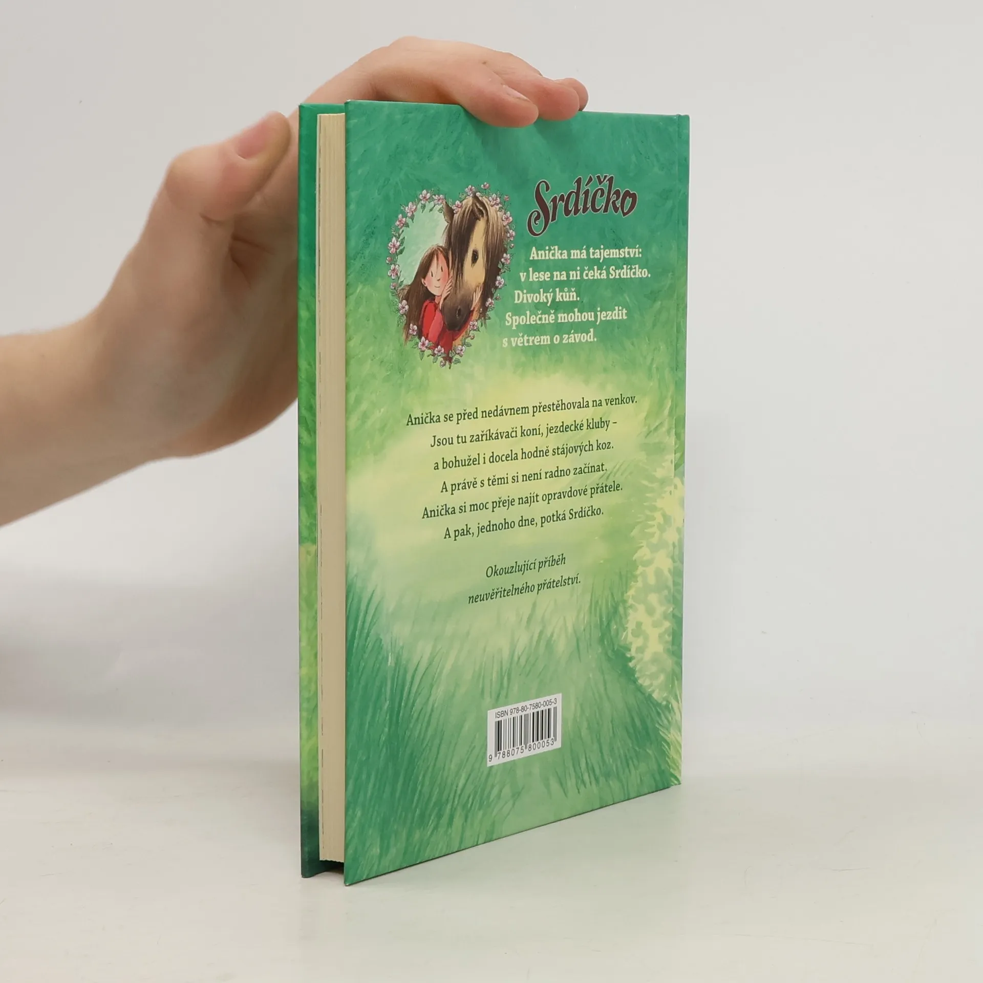 Anička se před nedávnem přestěhovala na venkov. Jsou tu zaříkávači koní, jezdecké kluby - a bohužel i docela hodně stájových koz. A právě s těmi si není radno začínat. Anička si moc přeje najít opravdové přátele. A pak, jednoho dne, potká Srdíčko.