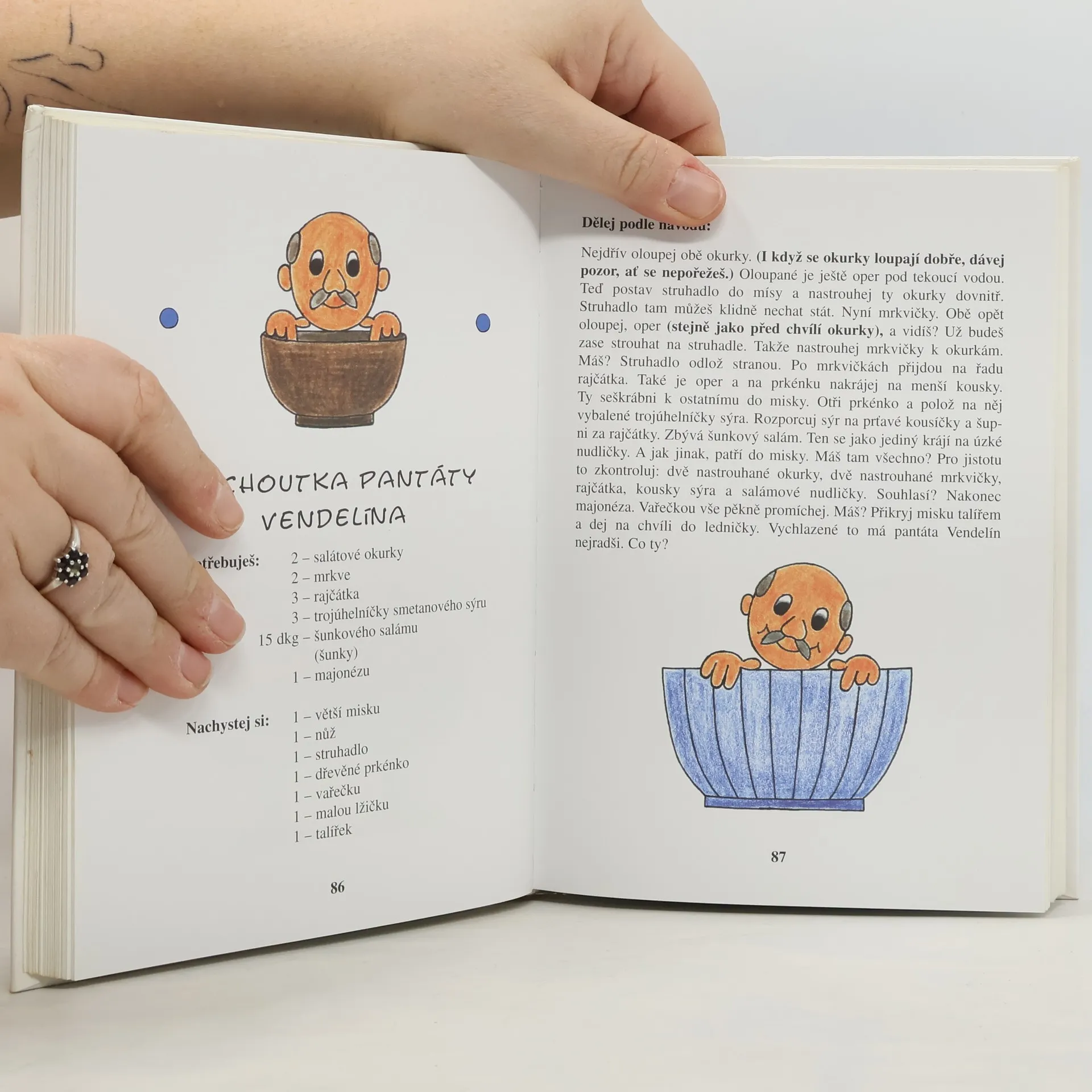 Knížka, která je určena nejen malým čtenářům, ale i jejich maminkám, babičkám a rovněž všem těm, kteří si dokáží v dnešní uspěchané době najít volnou chvilku a strávit ji ve společnosti svých dětí. V současnosti je tato publikace zcela ojedinělá, a to hned ze dvou důvodů. Za prvé svým zpracováním a za druhé svým obsahem. Zpracována je do čtyř okruhů, od těch nejjednodušších, které zvládnou malí kuchaři sami, až po náročné, kde by byla vhodná přítomnost dospělé osoby. Obsahem nejsou, jak by se dalo očekávat, pouhé atraktivní pokrmy, nýbrž jednoduché nápadité recepty z běžně dostupných surovin. Na své si přijde skutečně každý. Především však bylo autorčiným záměrem vyprovokovat u našich nejmenších touhu po poznání a vyzkoušení něčeho nového, užitečného, po snaze něco sám dokázat. Proto schválně použila lidovou stylizaci tak, aby měl malý čtenář možnost postupovat krok po krůčku a aby jasná srozumitelnost napomohla ke zdárnému „kuchaření".