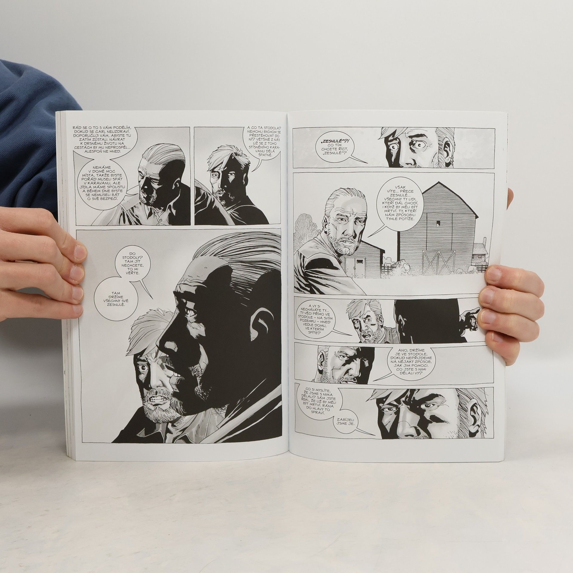Skupina přeživších kráčí světem, který ovládají mrtví a snaží se najít bezpečné místo. Jenže bezpečí se hledá hodně těžko a smrt se skrývá i na těch nejnevinnějších místech a při každém setkání si vybírá svou daň. Živí a mrtví patří k nejzásadnějším komiksovým sériím současnosti - a brzo se na televizích obrazovkách (doufejme i na těch našich) objeví seriál, který byl na jeho základě natočený. Seriál, který rozjel Frank Darabont, režisér snímků jako Vykoupení z věznice Shawshank či Zelená míle.