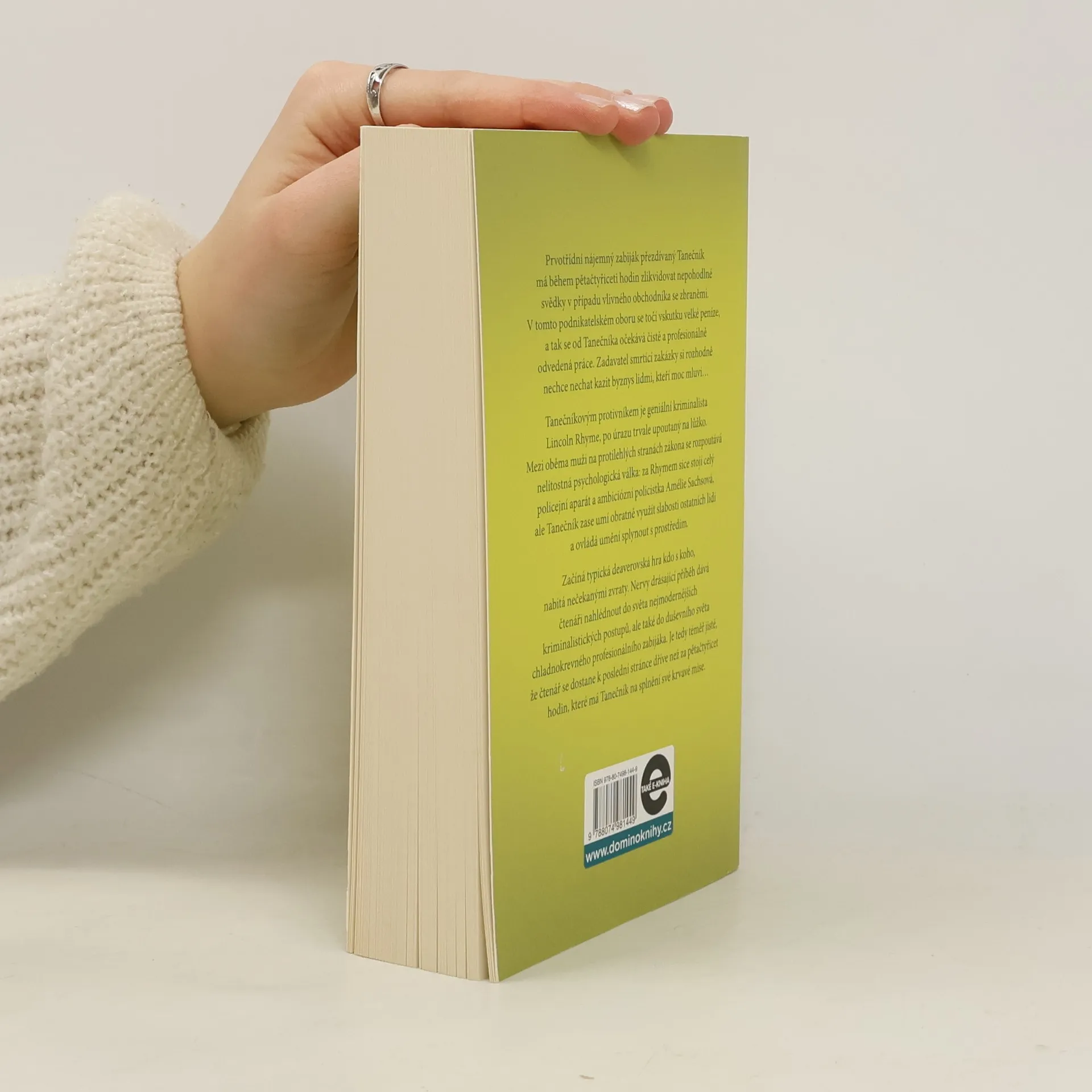 Geniální kriminalista Lincoln Rhyme a mladá policistka Amélie Sachsová, kteří se čtenářům poprvé představili v bestselleru Sběratel kostí, řeší další zapeklitý případ: během pětačtyřiceti hodin musejí vypátrat profesionálního vraha, přezdívaného Tanečník. Tanečník má v této lhůtě zlikvidovat tři nepohodlné svědky v případu vlivného obchodníka se zbraněmi a již od prvního okamžiku nenechává nikoho na pochybách, že si důvtipem a inteligencí nezadá s Rhymem. Mezi oběma muži se na dálku rozpoutá nelítostná psychologická válka, plná zvratů a úskoků, která se neobejde bez těžkých ztrát na životech. Nervy drásající příběh dává nahlédnout do zákulisí americké policejní praxe a zároveň je brilantní sondou do duševního světa chladnokrevného zabijáka. V publikaci uvedeno chybně vydání třetí, správně je: vydání čtvrté