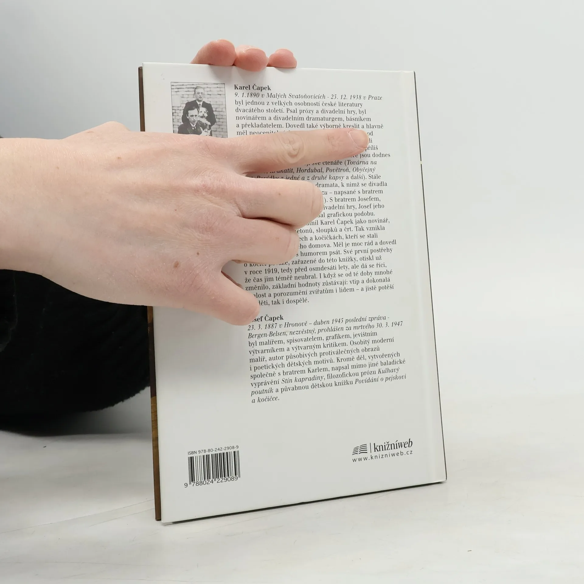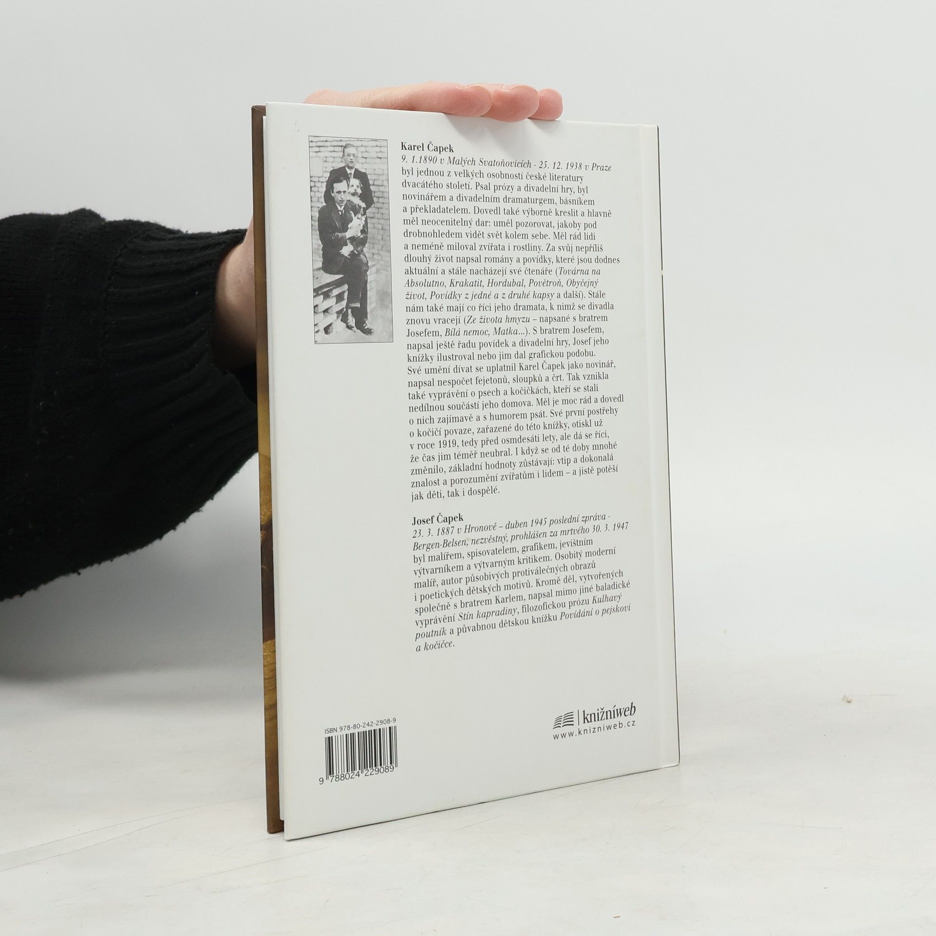 Kočka drží vždycky s domem, ale pes s pánem. Platnost tohoto starého přísloví si Karel Čapek mnohokrát ověřil v praxi. Psi a kočky byli nedílnou součástí domova velkého českého spisovatele. Humorná vyprávění o životě se čtyřnohými přáteli, zařazená do této knihy, vznikala nejdříve ve formě fejetonů, sloupků a črt. Některým je už více než 80 let, přesto jim neublížil zub času a jistě znovu potěší čtenáře a milovníky zvířat bez rozdílu věku. Vtipné vyprávění doplňují fotografie a řada kreseb, jejichž autorem je kromě Karla Čapka i jeho bratr Josef.