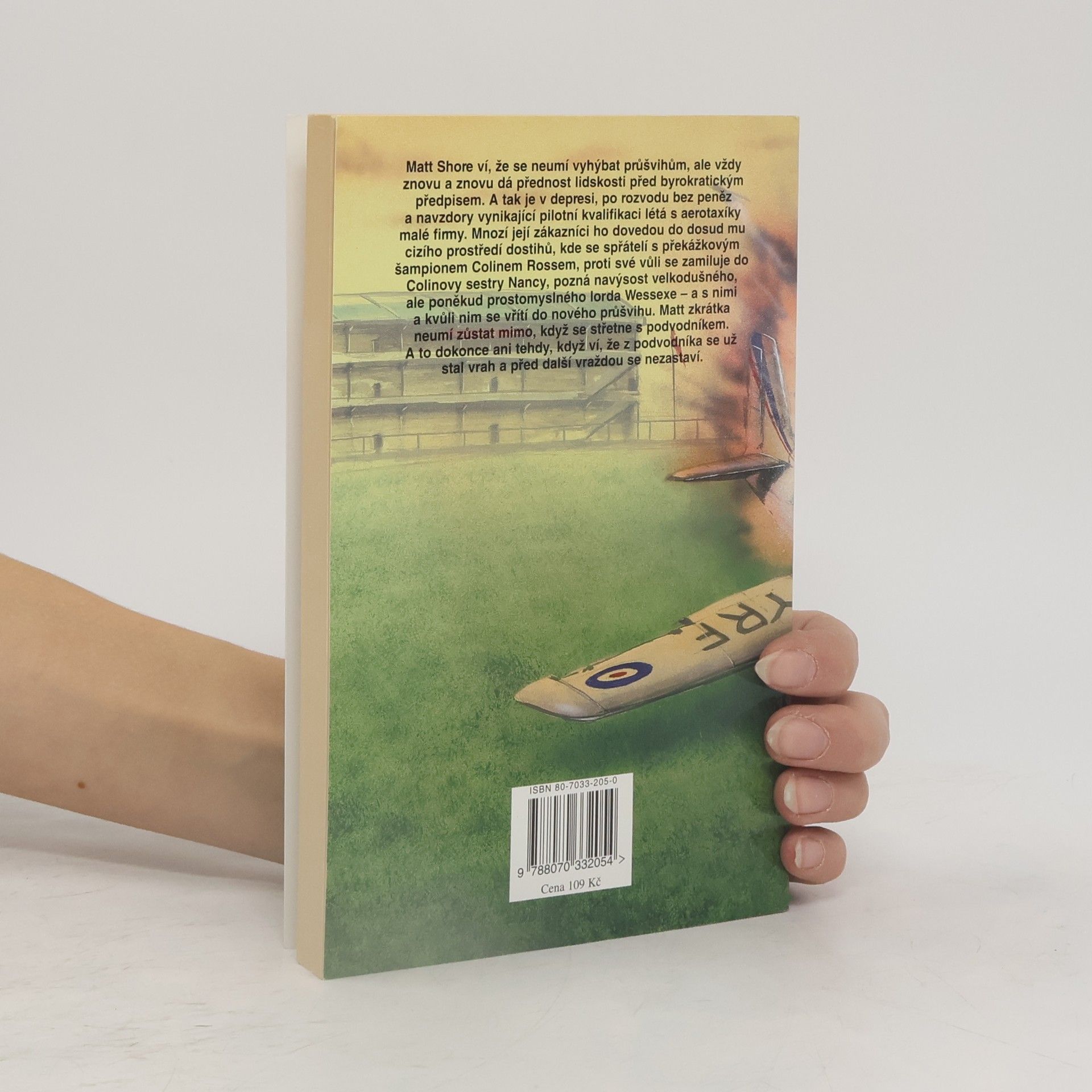 Matt Shore ví, že se neumí vyhýbat průšvihům, ale vždy znovu a znovu dá přednost lidskosti před byrokratickým předpisem. A tak je v depresi, po rozvodu bez peněz a navzdory vynikající pilotní kvalifikaci létá s aerotaxíky malé firmy. Mnozí její zákazníci ho dovedou do dosud mu cizího prostředí dostihů, kde se spřátelí s překážkovým šampionem Colinem Rossem, proti své vůli se zamiluje do Colinovy sestry Nancy, pozná navýsost velkodušného, ale poněkud prostomyslného lorda Wessexe - a s nimi a kvůli nim se vřítí do nového průšvihu. Matt zkrátka neumí zůstat mimo, když se střetne s podvodníkem. A to dokonce ani tehdy, když ví, že z podvodníka se už stal vrah a před další vraždou se nezastaví.
