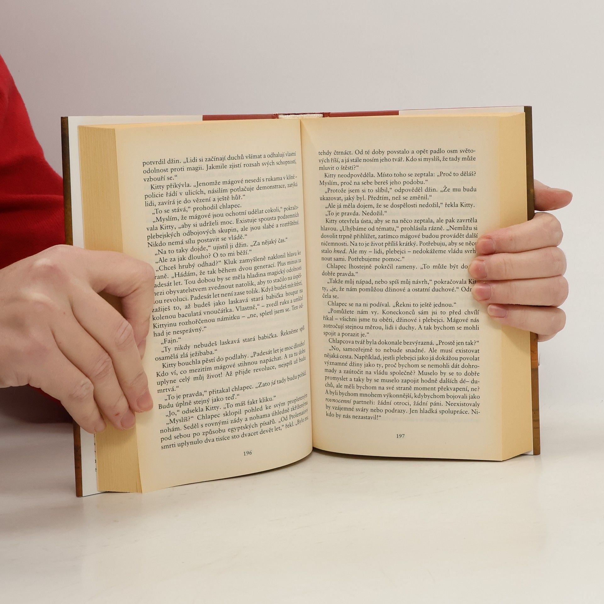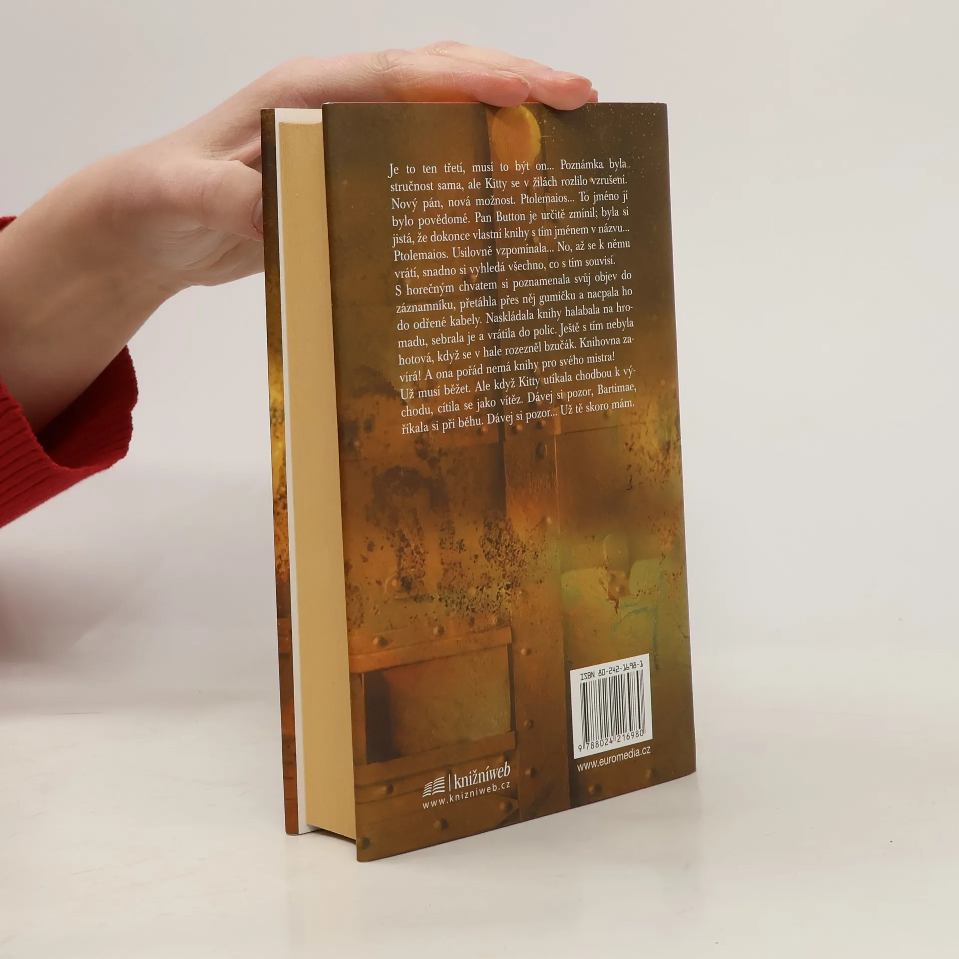 Postavy: Nathaniel, Bartimaeus, Kitty, pan Makepeace, pan Button, Ptolemaios, Jane Farrarová a další… - Tři roky uplynuly od chvíle, kdy mág Nathaniel překazil ničivý útok na Londýn. Nyní musí jako vysoko postavený člen britské vlády čelit stále větším problémům: válka, kterou Británie vede v koloniích, se vyvíjí špatně, impérium se otřásá v základech a mezi plebejci to vře nespokojeností… Bartimaeovi sev dávné minulosti nikdo nevyrovnal. Nyní, po několika letech téměř nepřetržité služby, je už však u konce sil. Přepracovaný, stále nespokojenější Nathaniel s ním zachází hůř než kdy předtím. Kdysi mocný džin je zesláblý, zranitelný a dochází mu trpělivost… Kitty se mezitím u roztržitého starého mága tajně přiučuje magickému umění, studuje démony a pátrá po Bartimaeově minulosti. Doufá, že s pomocí takto získaných informací poruší začarovaný kruh nepřátelství mezi džiny a lidmi… Ohromující závěr Bartimaeovi trilogie překračuje hranice světů. Dramatické osudy Bartimaea, Nathaniela a Kitty se v něm naposledy spojují, neboť jenom společně mohou porazit proradné mágy, odhalit děsivé spiknutí a postavit se největší hrozbě v dějinách magie. A co hůř, musí přitom spolupracovat…