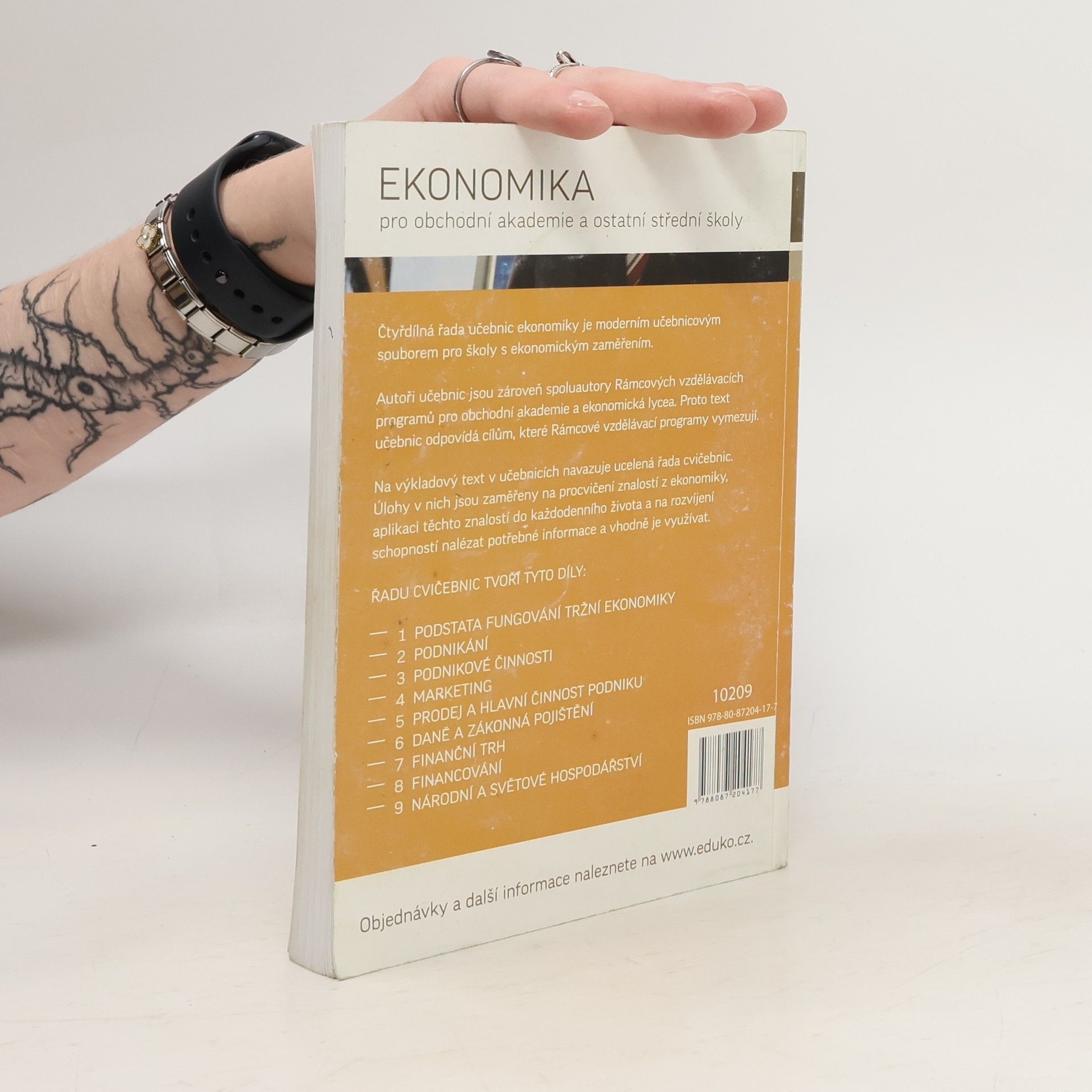 Učebnice začíná charakteristikou národního hospodářství jako východiska pro podnikání. Poté přechází k marketingu, který je pojat především jako praktická disciplína. Dále navazuje vysvětlení, jak podnik zabezpečuje materiál, dlouhodobý majetek a zaměstnance pro svou činnost. Současně umožňuje vytvořit důkladné základy pro pochopení účetnictví včetně potřebných výpočtů, tj. výpočtů odpisů, mezd apod. Obsahuje celky Národní hospodářství, Marketing, Oběžný majetek, Dlouhodobý majetek a Zaměstnanci.