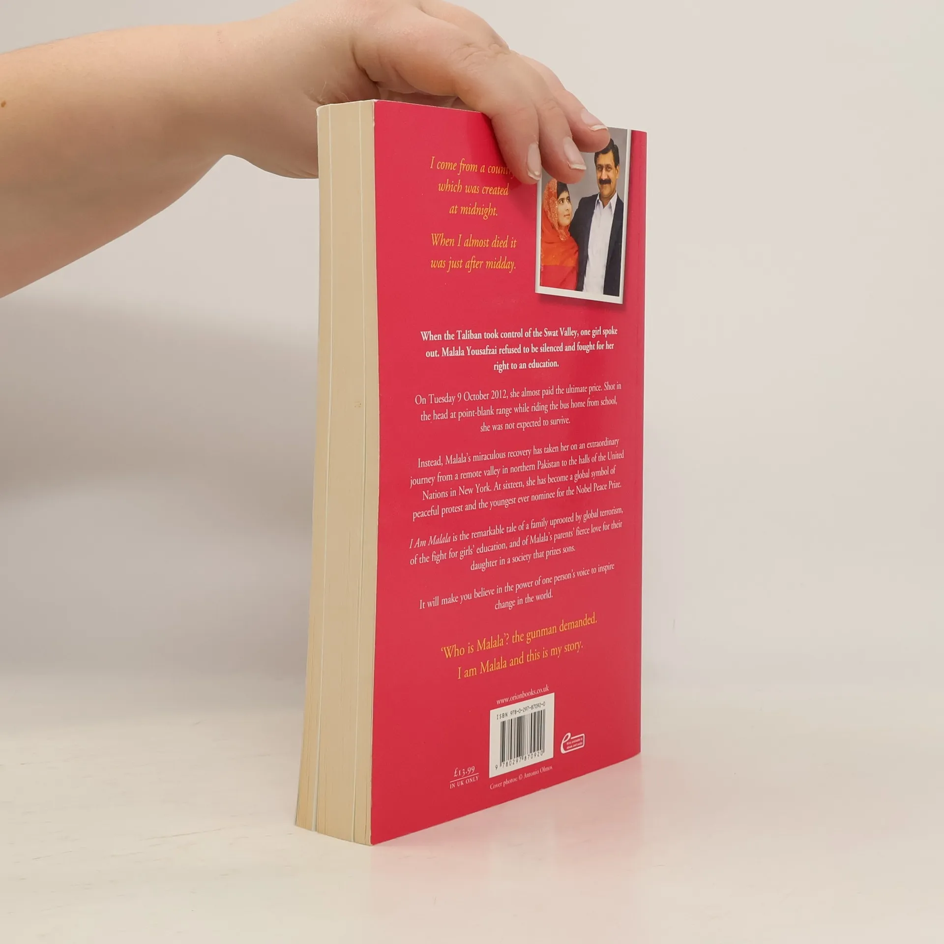 I come from a country which was created at midnight. When I almost died it was just after midday. When the Taliban took control of the Swat Valley, one girl spoke out. Malala Yousafzai refused to be silenced and fought for her right to an education. On Tuesday 9 October 2012, she almost paid the ultimate price. Shot in the head at point blank range while riding the bus home from school, few expected her to survive. Instead, Malala's miraculous recovery has taken her on an extraordinary journey from a remote valley in Northern Pakistan to the halls of the United Nations in New York. At sixteen, she has become a global symbol of peaceful protest and the youngest ever nominee for the Nobel Peace Prize. I Am Malala is the remarkable tale of a family uprooted by global terrorism, of the fight for girls' education, and of Malala's parents' fierce love for their daughter in a society that prizes sons. It will make you believe in the power of one person's voice to inspire change in the world.