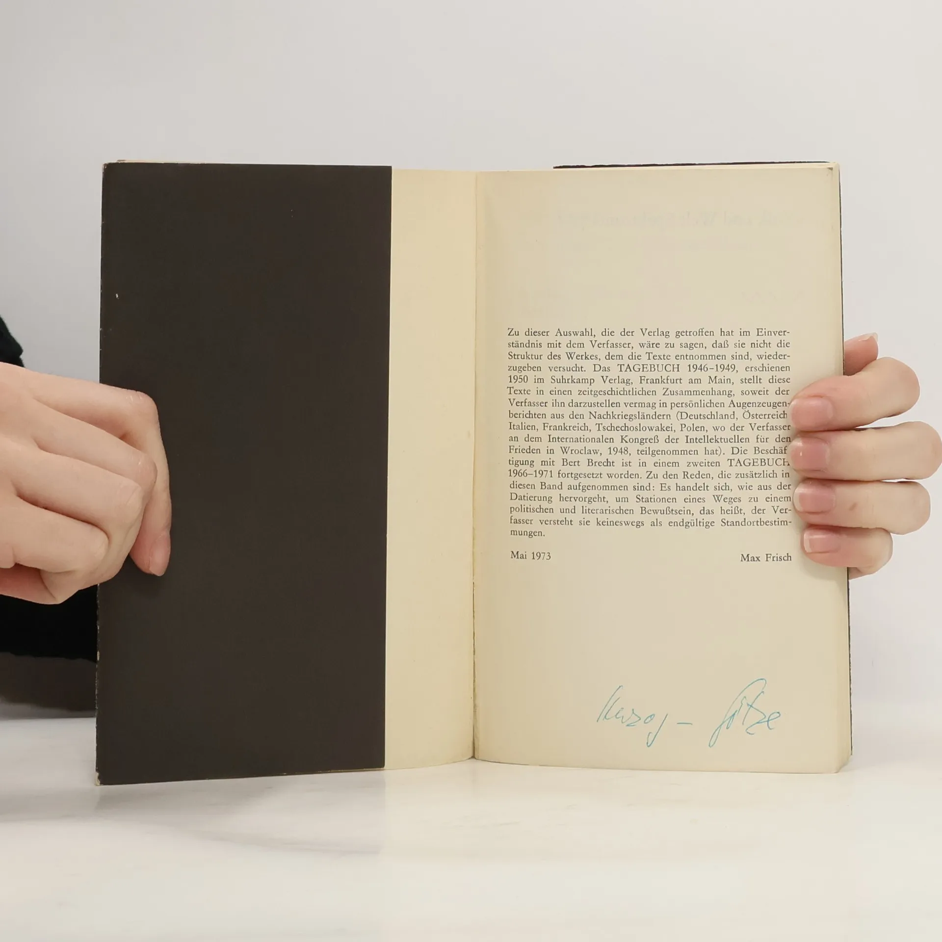 Aus einem Tagebuch und Reden, Max Frisch