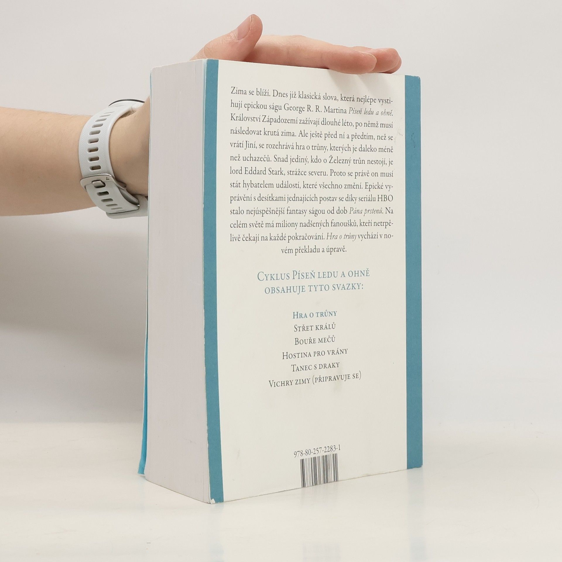 Zima se blíží. Dnes již klasická slova, která nejlépe vystihují epickou ságu George R. R. Martina Píseň ledu a ohně. Království Západozemí zažívají dlouhé léto, po němž musí následovat krutá zima. Ale ještě před ní a předtím, než se vrátí Jiní, se rozehrává hra o trůny, kterých je daleko méně než uchazečů. Snad jediný, kdo o Železný trůn nestojí, je lord Eddard Stark, strážce severu. Proto se právě on musí stát hybatelem událostí, které všechno změní. Epické vyprávění s desítkami postav se díky seriálu HBO stalo nejúspěšnější fantasy ságou od dob Pána prstenů. Na celém světě má miliony nadšených fanoušků, kteří netrpělivě čekají na každé pokračování. Hra o trůny vychází česky v novém překladu a úpravě.