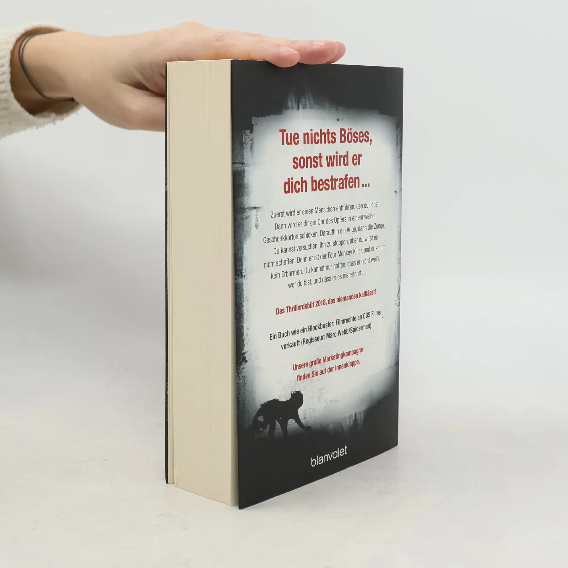 5 Jahre, unzählige Opfer und ein Serienkiller, der auch nach seinem Tod nicht ruht … Tue nichts Böses, sonst wird er dich bestrafen. Zuerst wird er einen Menschen entführen, den du liebst. Dann wird er dir ein Ohr des Opfers in einem weißen Geschenkkarton schicken. Daraufhin ein Auge, dann die Zunge. Du kannst versuchen, ihn zu stoppen, aber du wirst es nicht schaffen. Denn er ist der Four Monkey Killer, und er kennt kein Erbarmen. Du kannst nur hoffen, dass er nicht weiß, wer du bist, und dass er es nie erfährt …