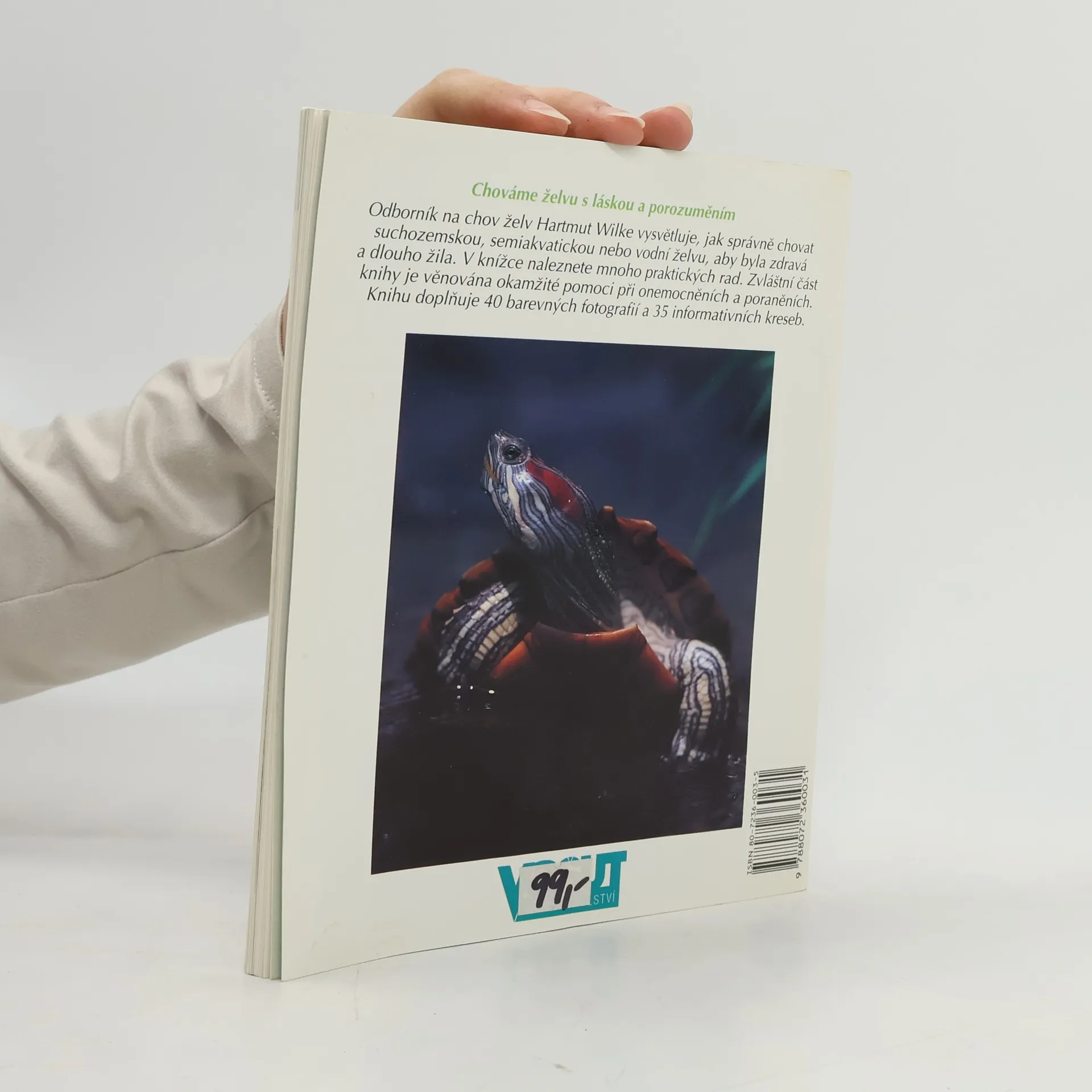 Odborník na chov želv Hartmut Wilke vysvětluje, jak správně chovat suchozemskou, semiakvatickou nebo vodní želvu, aby byla zdravá a dlouho žila. V knížce naleznete mnoho praktických rad. Zvláštní část knihy je věnována okamžité pomoci při onemocněních a poraněních. knihu doplňuje 40 barevných fotografií a 35 informativních kreseb. Kniha je určena i dětem, které chtějí o své zvířátko pečovat samy...