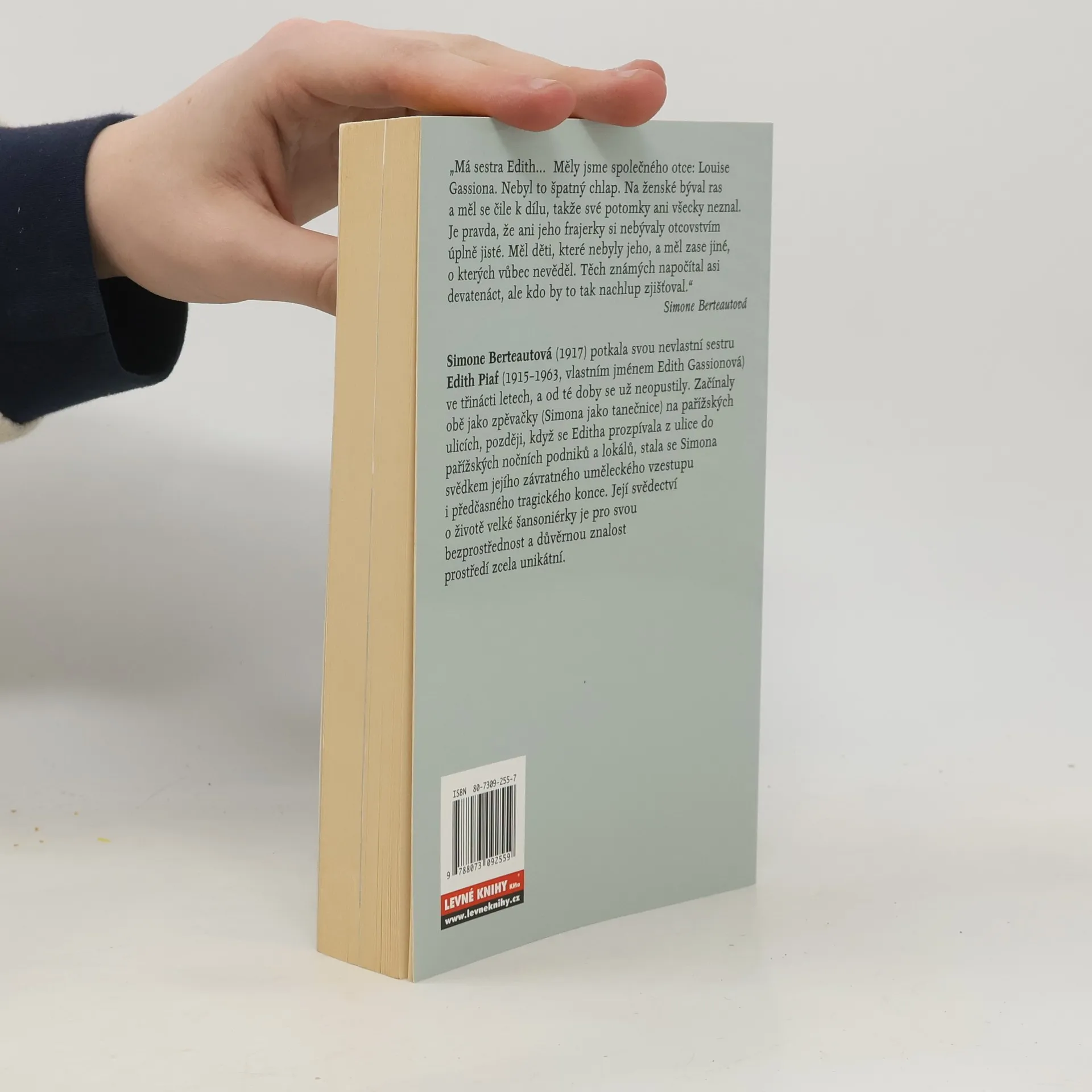Poutavé svědectví o životě Edith Piaf z pera její o dva roky mladší nevlastní sestry, také zpěvačky Simone Berteautové. Simone Berteautová popisuje závratný umělecký vzestup Edith, s níž se znala od svých třinácti let a už se pak nikdy neopustily. Měly společného otce – Louise Gassiona, takže vlastním jménem byla Edith Piaf Edith Giovanna Gassionová. Piaf je přezdívka, znamená česky „vrabčák“. S. Berteautová sleduje uměleckou kariéru Edith až do jejího předčasného tragického konce. Pro svou bezprostřednost a důvěrnou znalost prostředí jde o svědectví zcela unikátní.