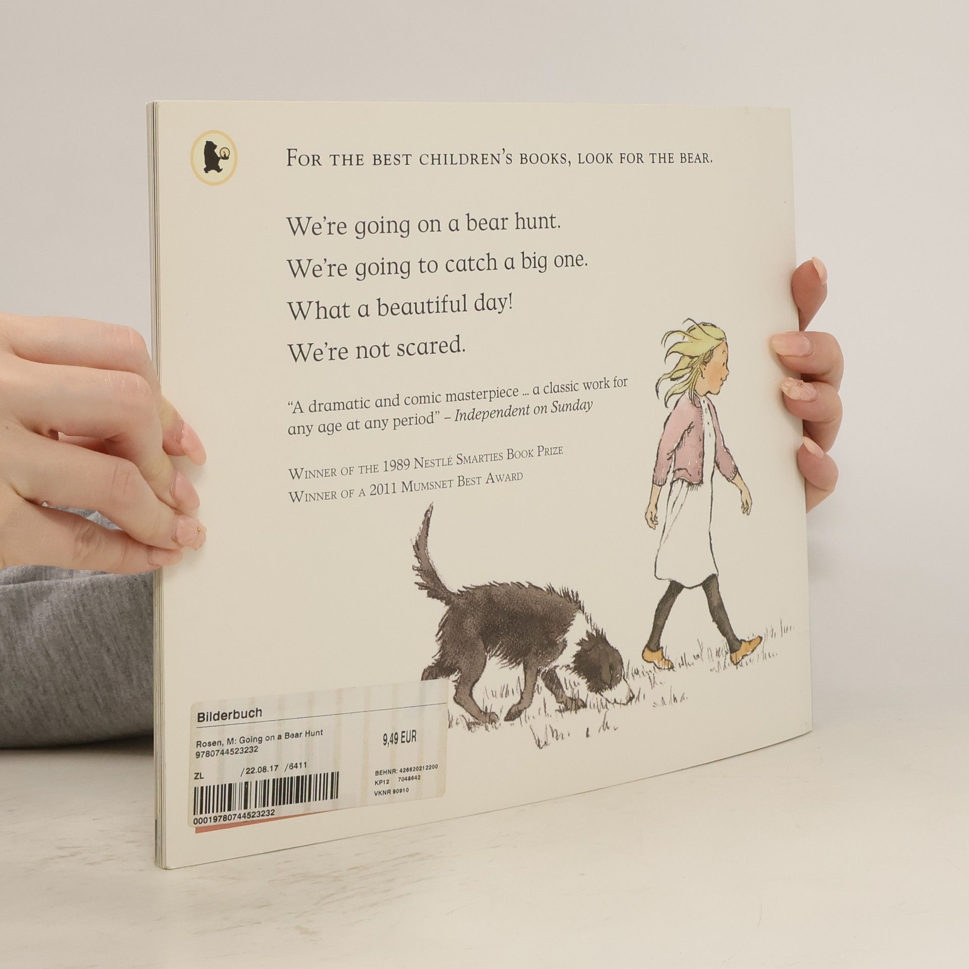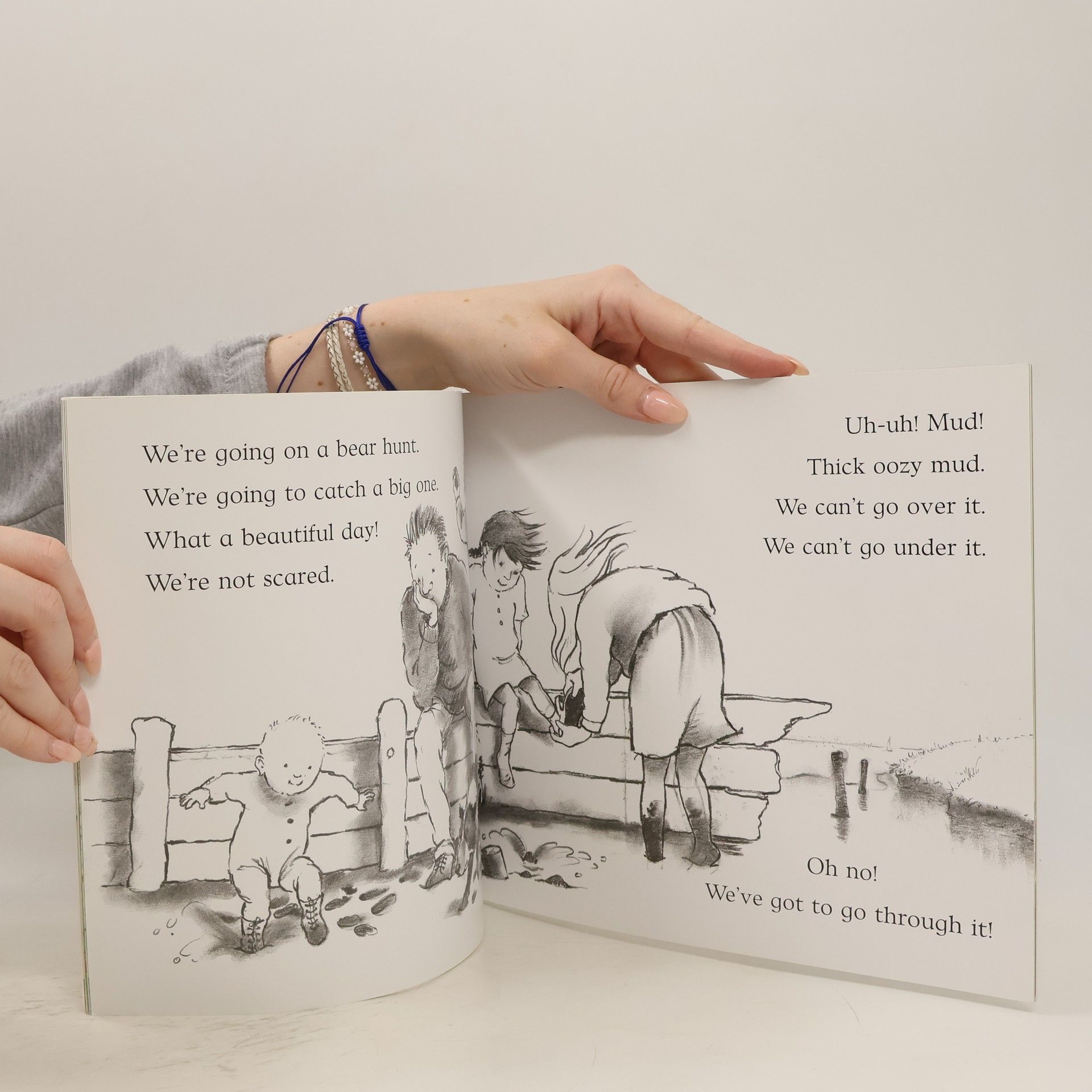 Go on a bear hunt and do the actions with this award-winning picture book classic. Follow and join in the family's excitement as they wade through the grass, splash through the river and squelch through the mud in search of a bear. What a surprise awaits them in the cave on the other side of the dark forest.
