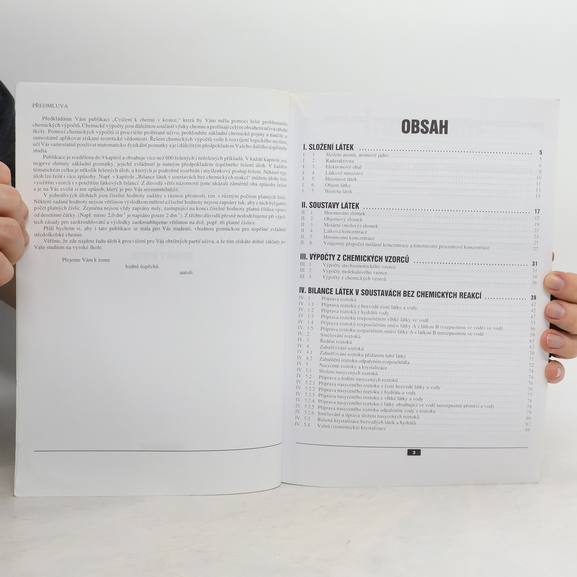 Příklady a cvičení k teoretické části Chemie v kostce. V úvodu každé části jsou uvedeny řešené příklady včetně postupu. Ke všem ostatním cvičením a příkladům jsou řešení uvedena v závěru publikace.