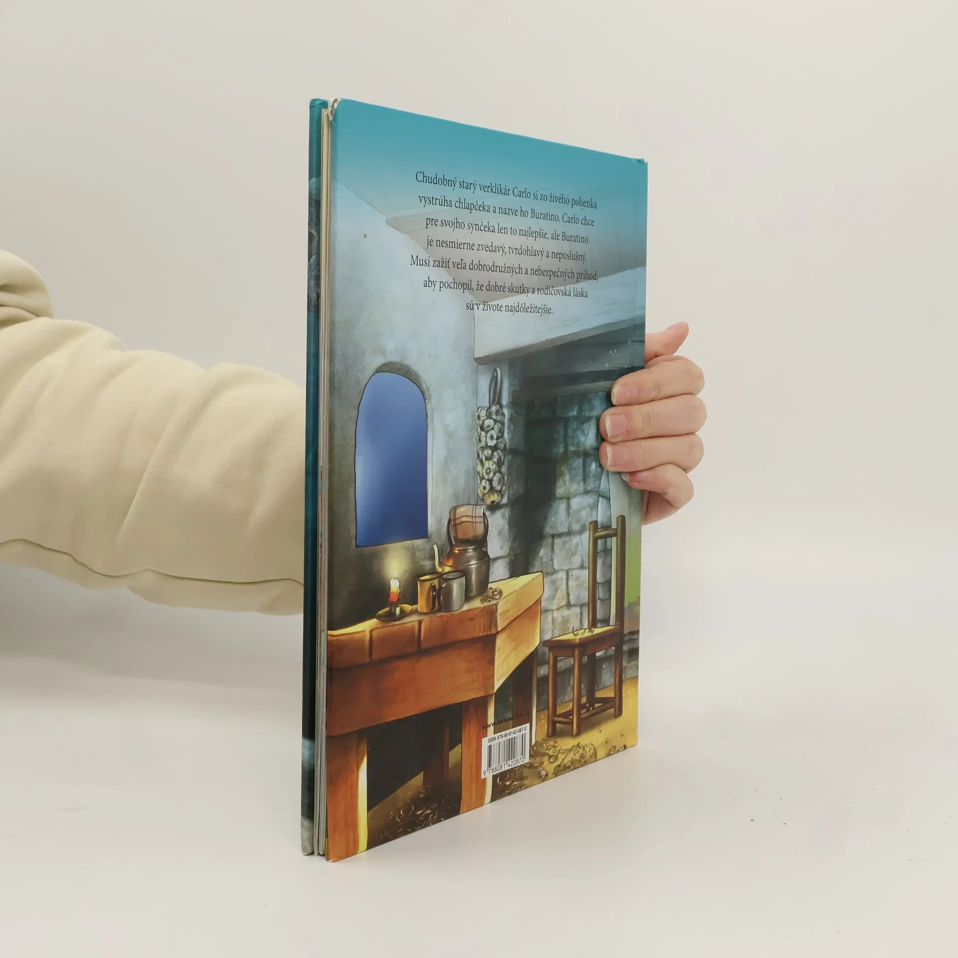 Chudobný starý verklikár Carlo si zo živého polienka vystrúha chlapčeka a nazve ho Buratino. Carlo chce pre svojho synčeka len to najlepšie, ale Buratino je nesmierne zvedavý, tvrdohlavý a neposlušný. Musí zažiť veľa dobrodružných a nebezpečných príhod, aby pochopil, že dobré skutky a rodičovská láska sú v živote najdôležitejšie. Ilustrovala Ana Grigorjev. Preložila Zuzana Kamenská.