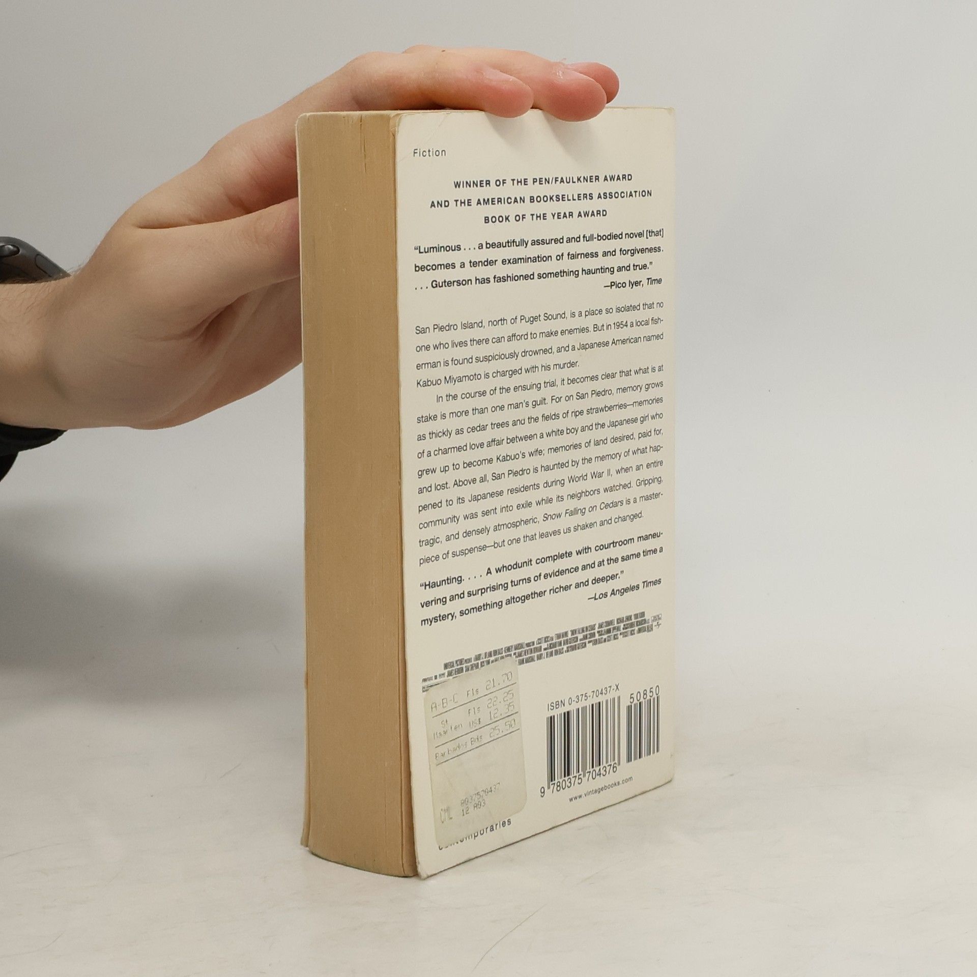 NATIONAL BESTSELLER • PEN/Faulkner Award Winner • A gripping, tragic, and densely atmospheric masterpiece of courtroom suspense—one that leaves us shaken and changed. "Haunting .... A whodunit complete with courtroom maneuvering and surprising turns of evidence and at the same time a mystery, something altogether richer and deeper." —Los Angeles Times San Piedro Island, north of Puget Sound, is a place so isolated that no one who lives there can afford to make enemies. But in 1954 a local fisherman is found suspiciously drowned, and a Japanese American named Kabuo Miyamoto is charged with his murder. In the course of the ensuing trial, it becomes clear that what is at stake is more than a man's guilt. For on San Pedro, memory grows as thickly as cedar trees and the fields of ripe strawberries—memories of a charmed love affair between a white boy and the Japanese girl who grew up to become Kabuo's wife; memories of land desired, paid for, and lost. Above all, San Piedro is haunted by the memory of what happened to its Japanese residents during World War II, when an entire community was sent into exile while its neighbors watched.