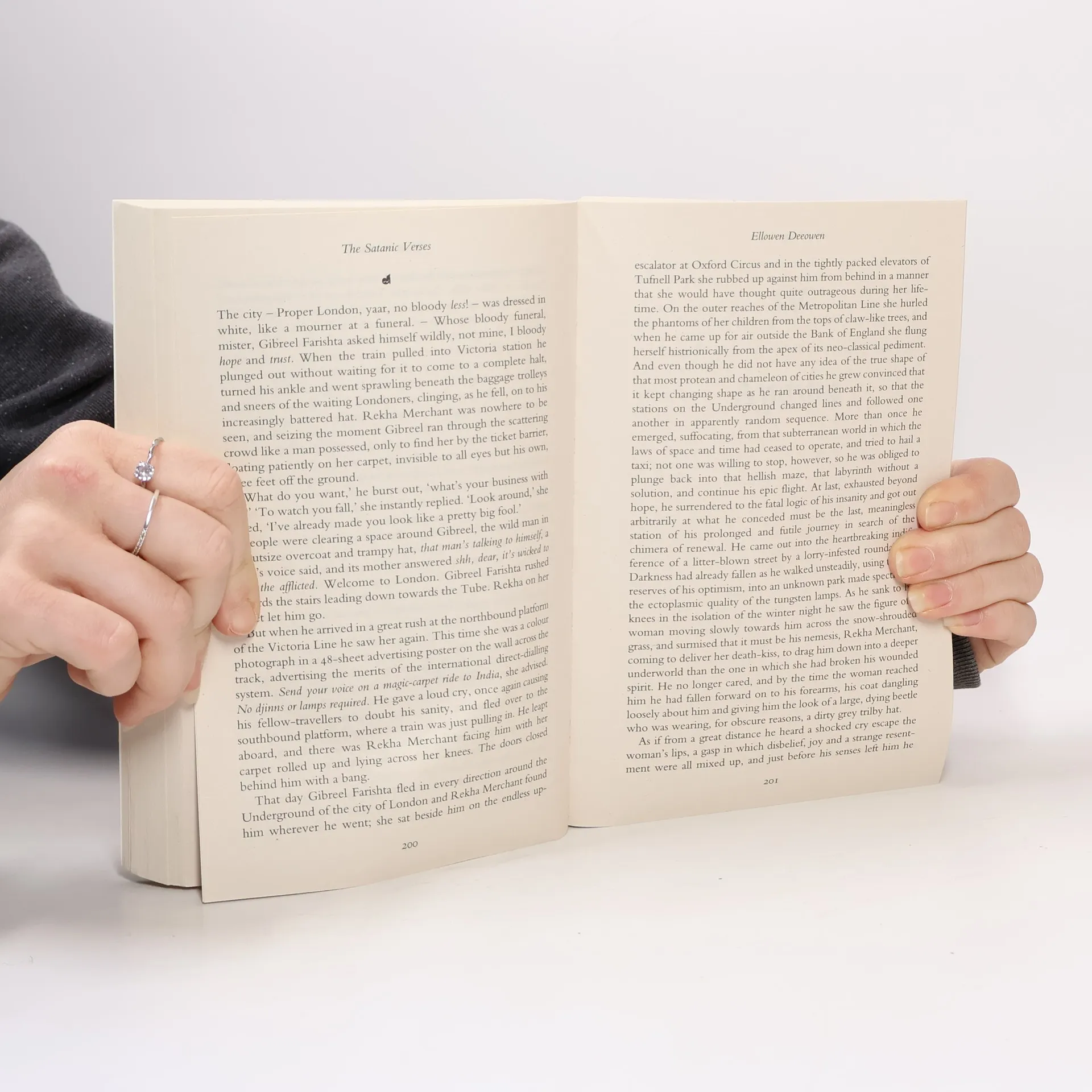 Gibreel Farishta, India's legendary movie star, and Saladin Chamcha, the man of a thousand voices, fall earthward from a bombed jet toward the sea, singing rival verses in an eternal wrestling match between good and evil.